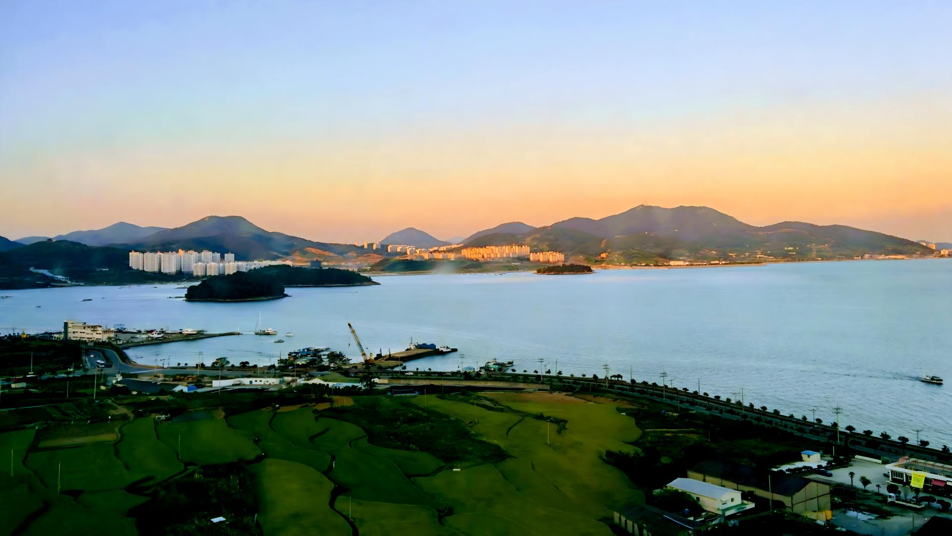 여수 작은 포구의 저녁노을