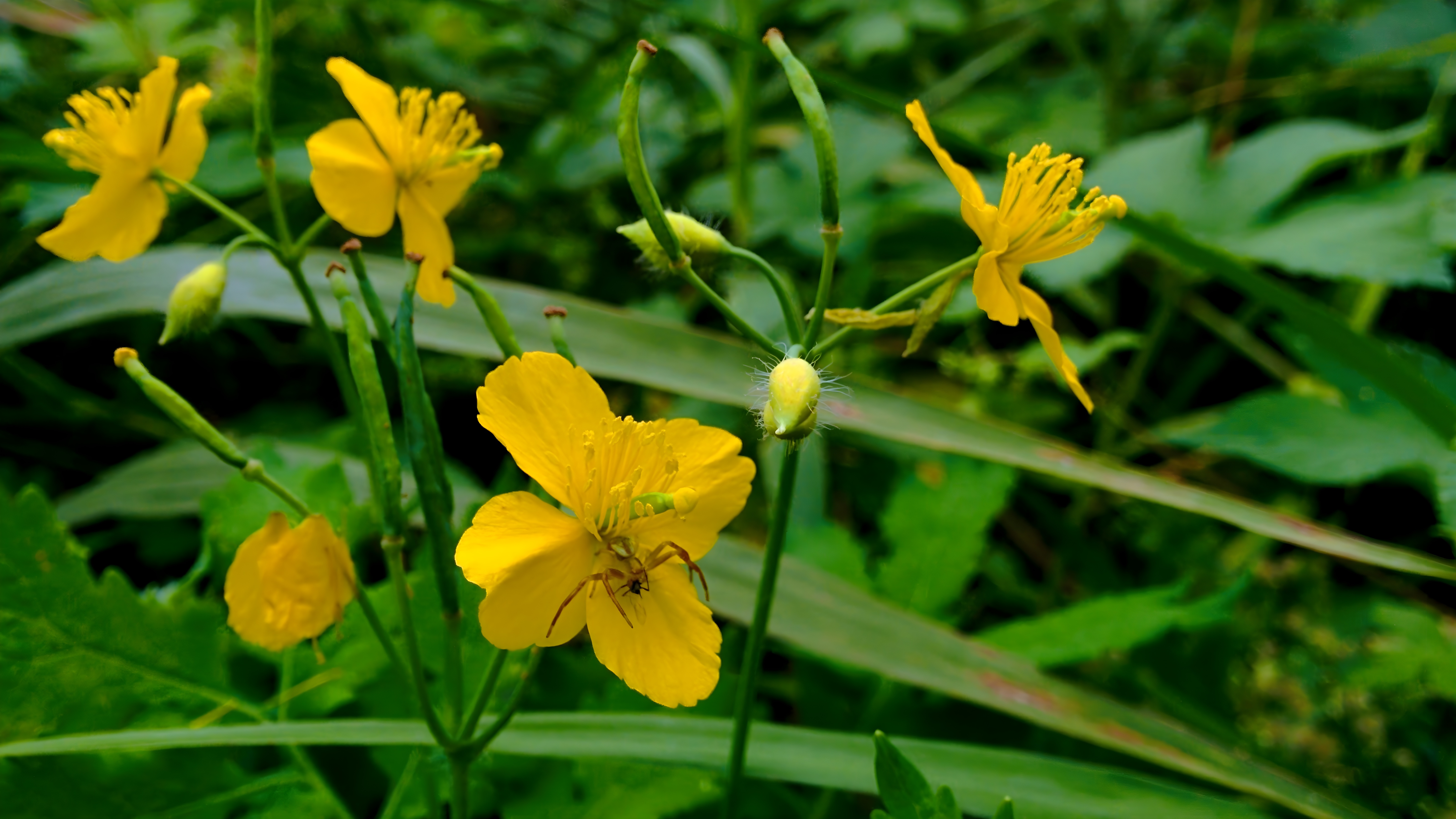 애기똥풀 꽃의 작은 파리를 사냥한 꽃게거미