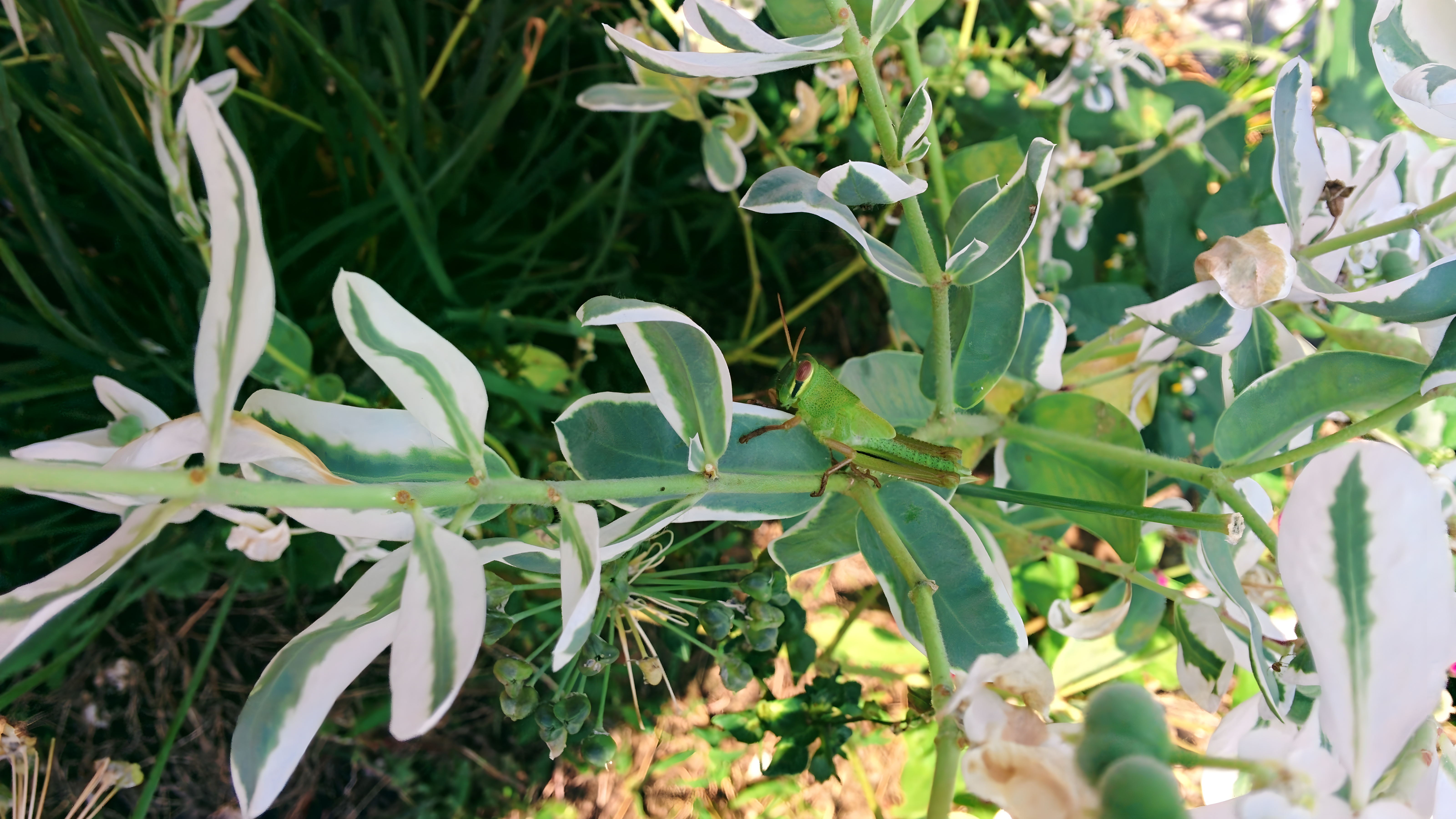 설악초에 앉은 어린 각시메뚜기 #설악초 #메뚜기 #각시메뚜기 #약충 #숨바꼭질 [원본: 해상도 = 6400x3600, 크기 = 3.7MiB]