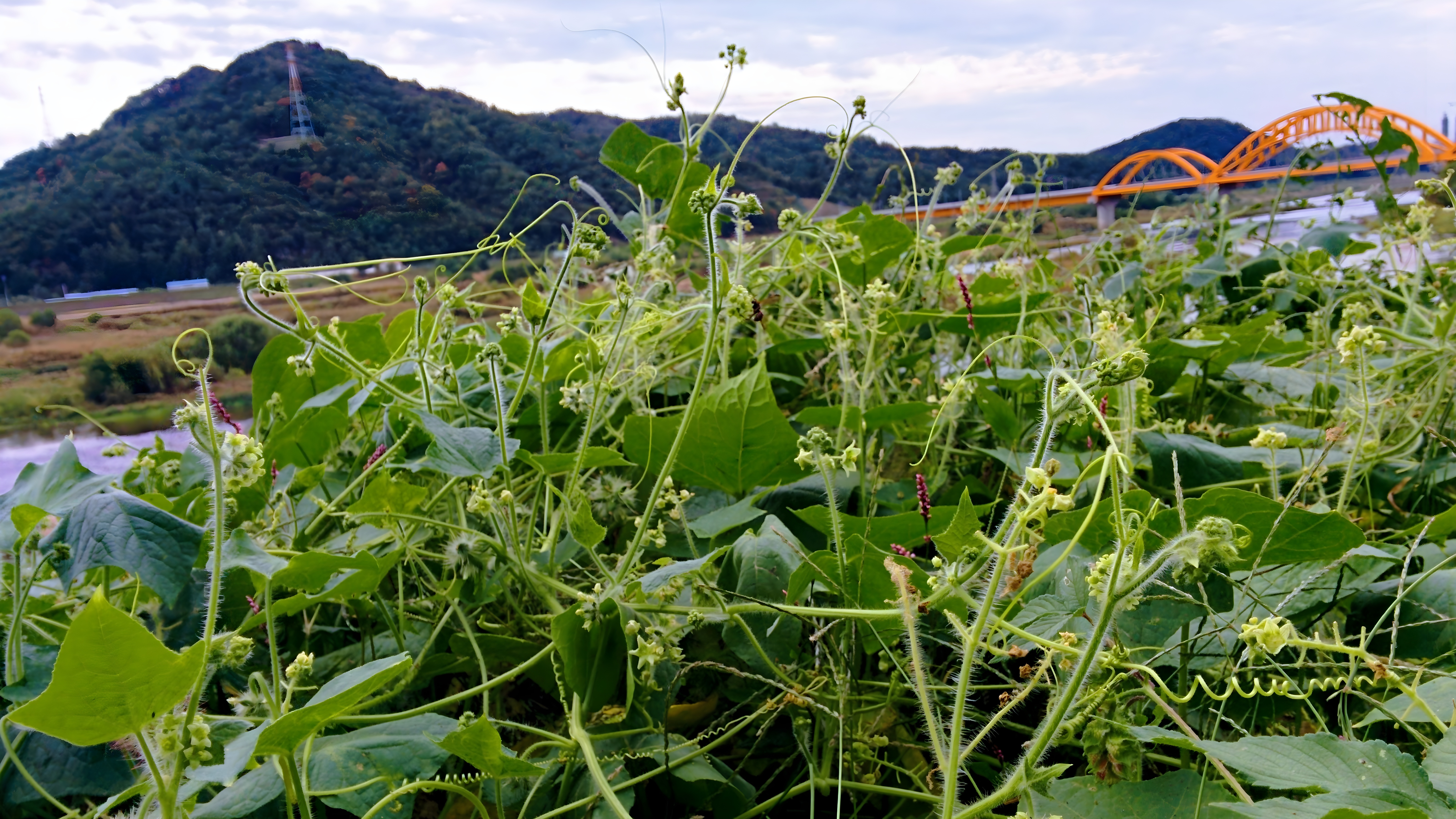 호남고속선 금강철교를 보며 강기숡을 뒤덮은 가시박