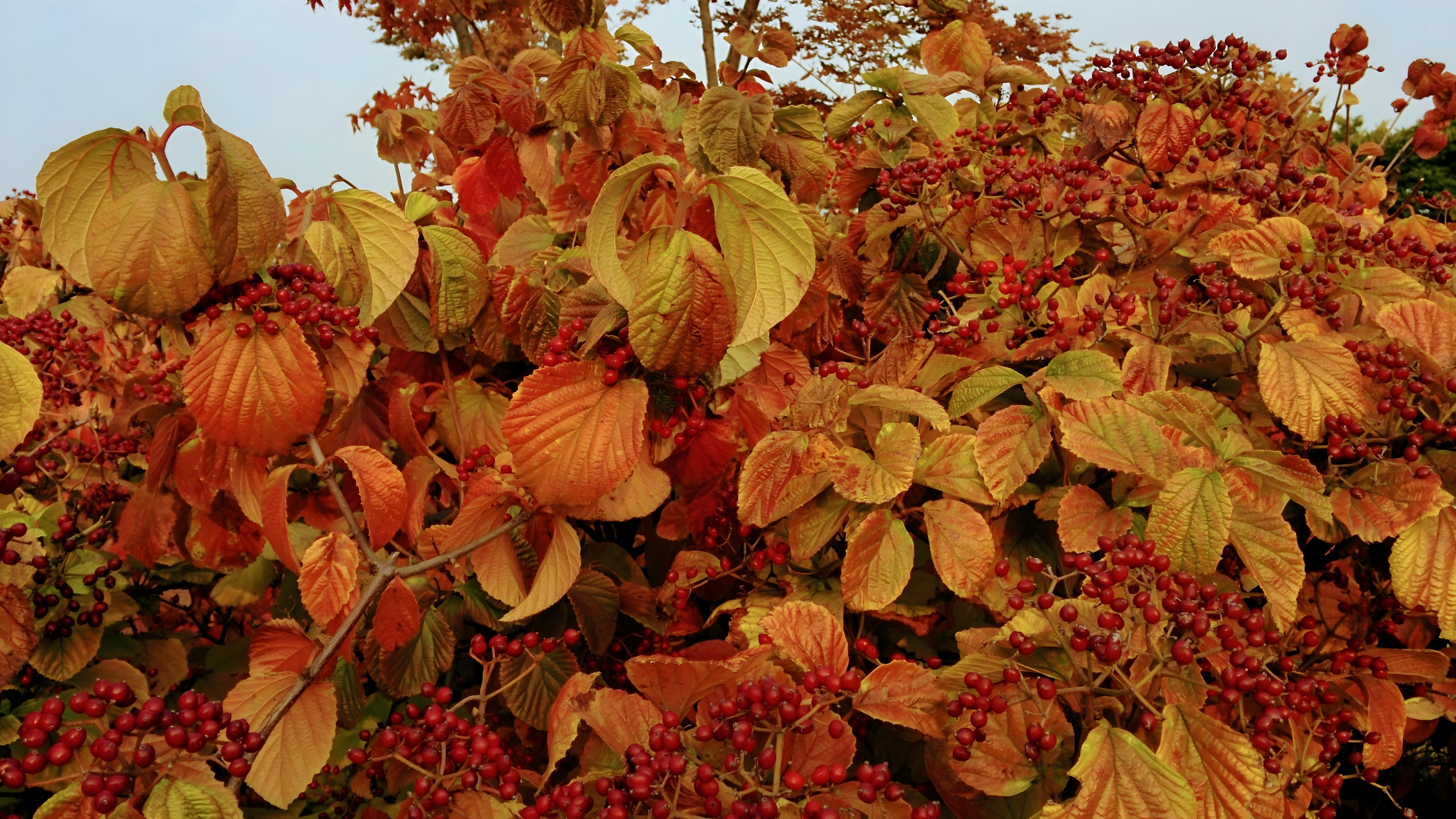 붉게 물든 가막살나무 잎과 열매