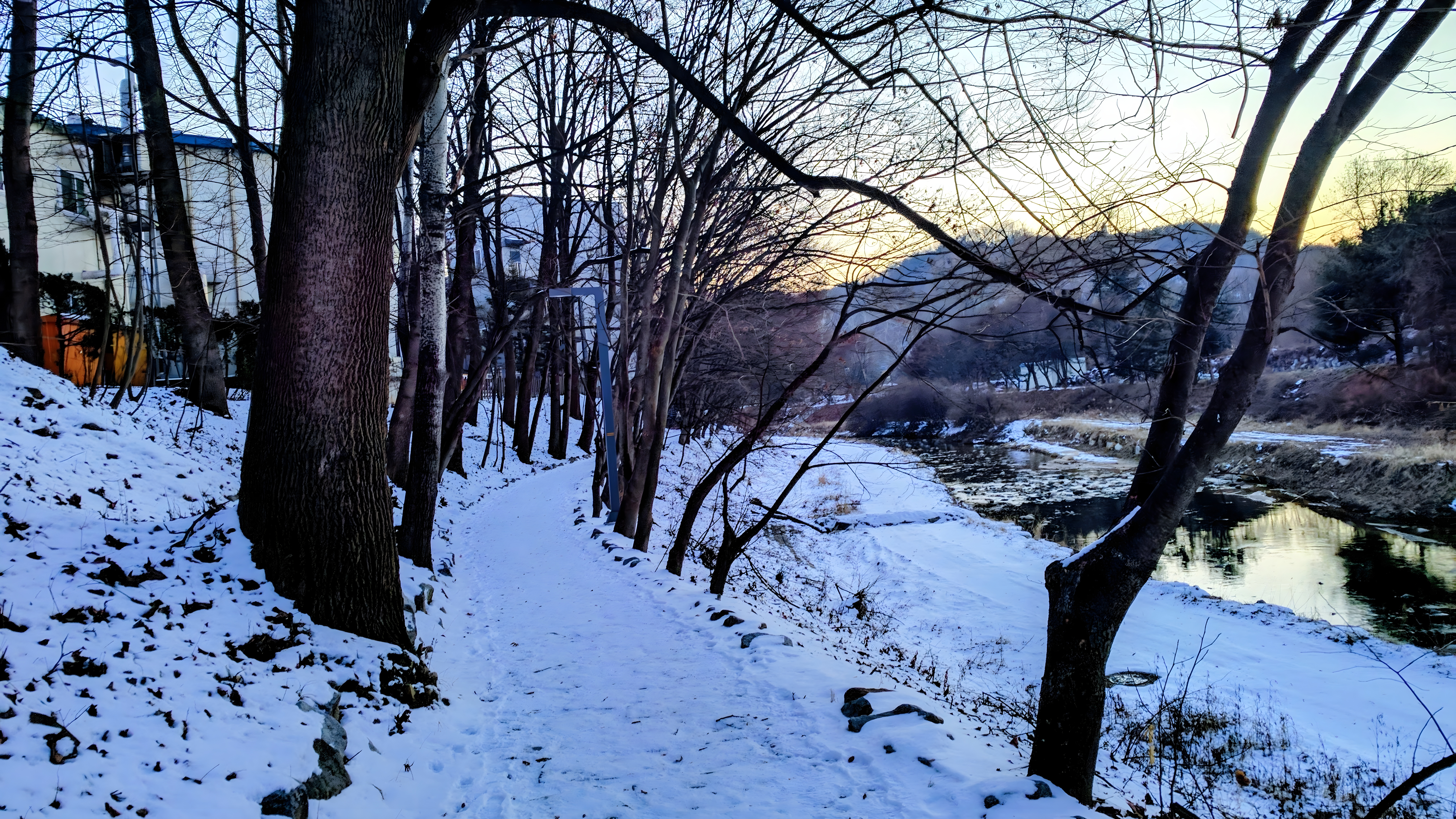 눈내린 탄동천 산책로