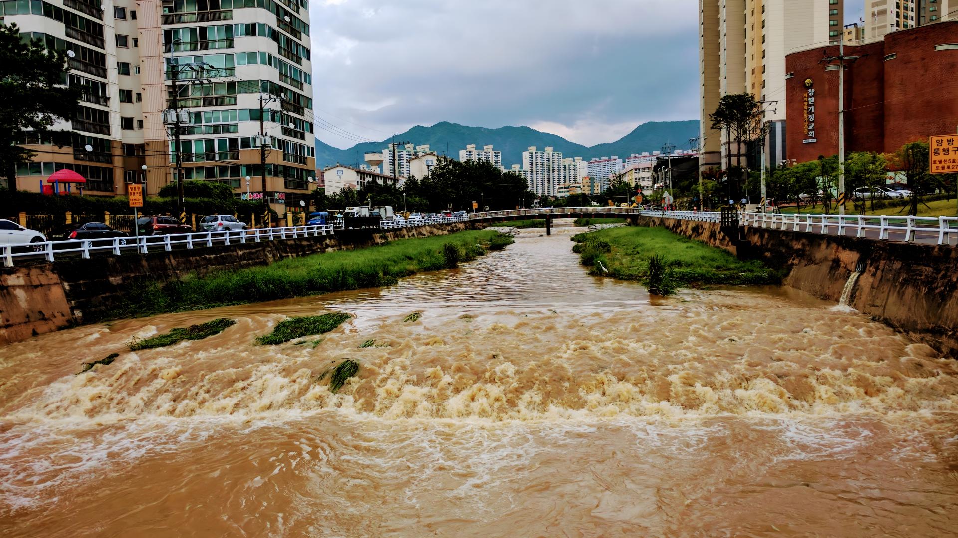 황톳물이 범람하는 창원 토월천