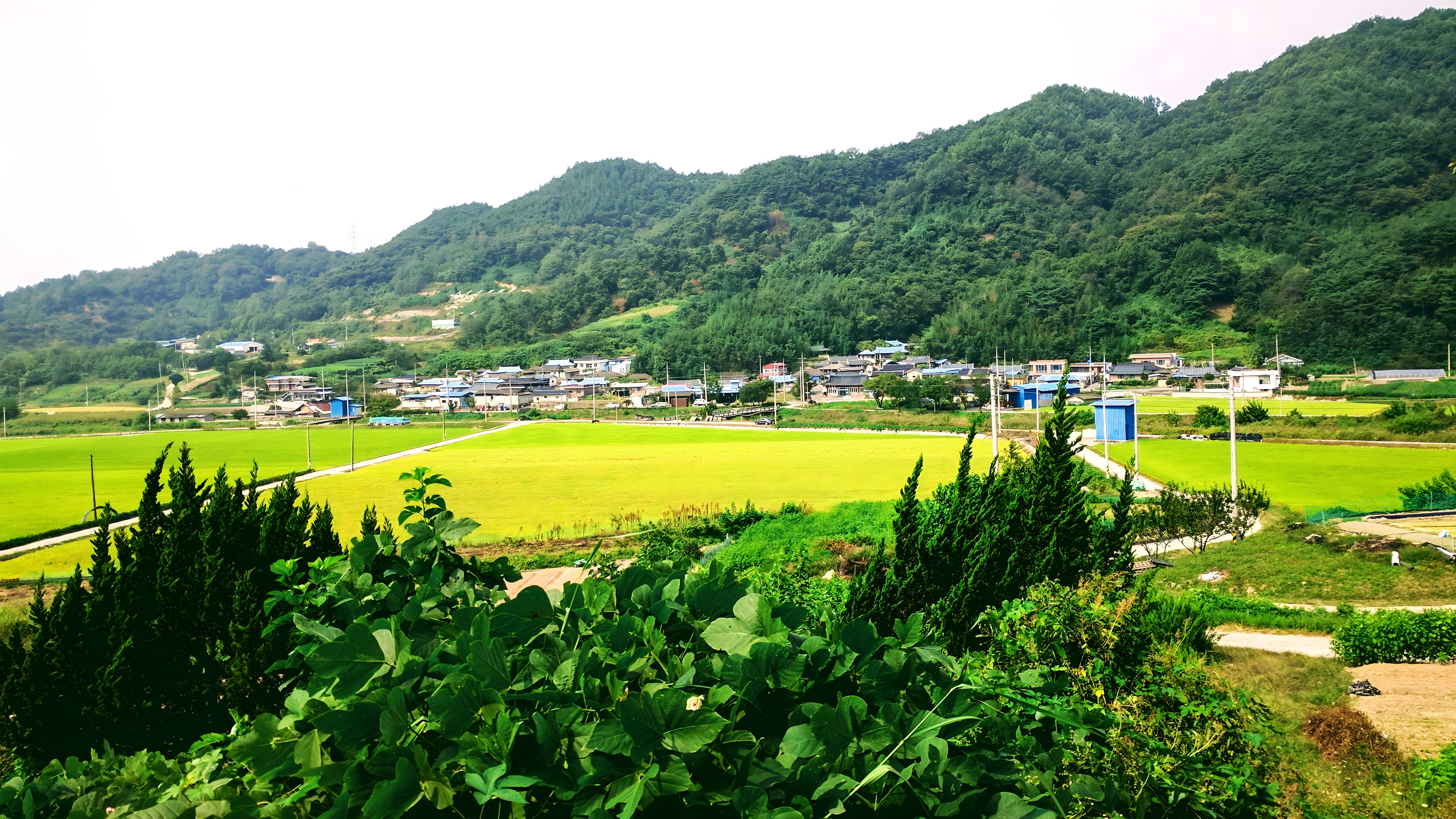 나락이 익어가는 농촌마을, 구석구석 전봇대들이 인상적.