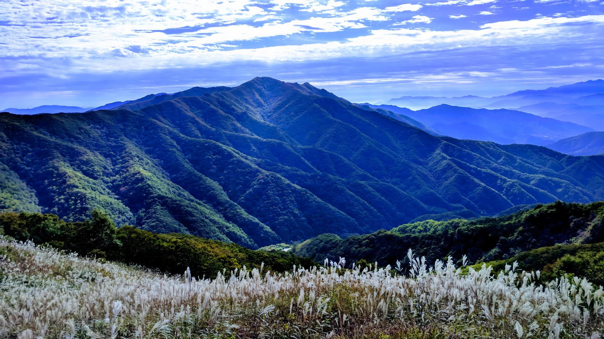 장수 장안산 억새밭에서 본 산자락