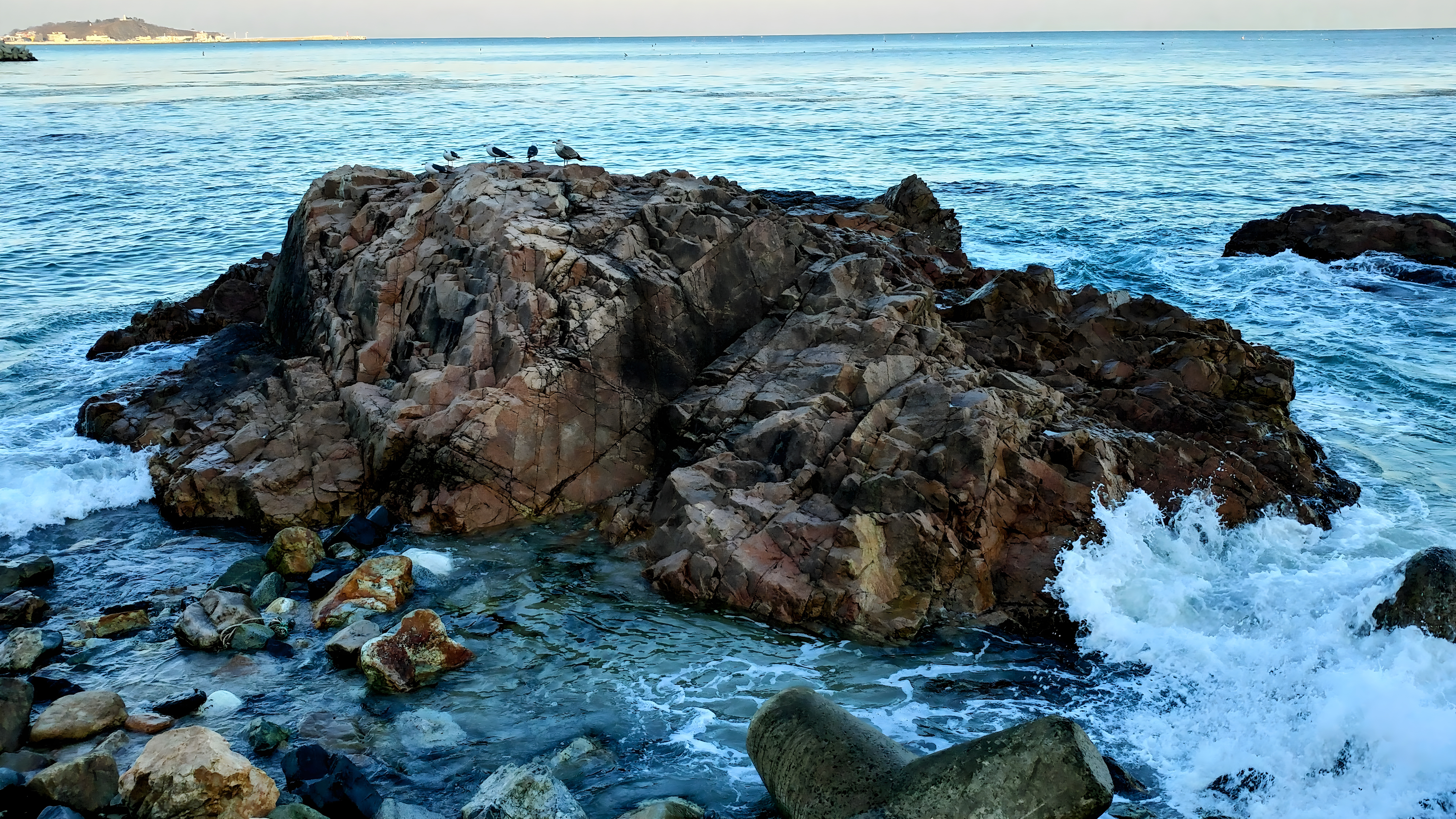 바닷가 풍경 #바위 #새 #갈매기 #파도 #물거품 #바다 #울진군 [원본: 해상도 = 7968x4482, 크기 = 13.1MiB]