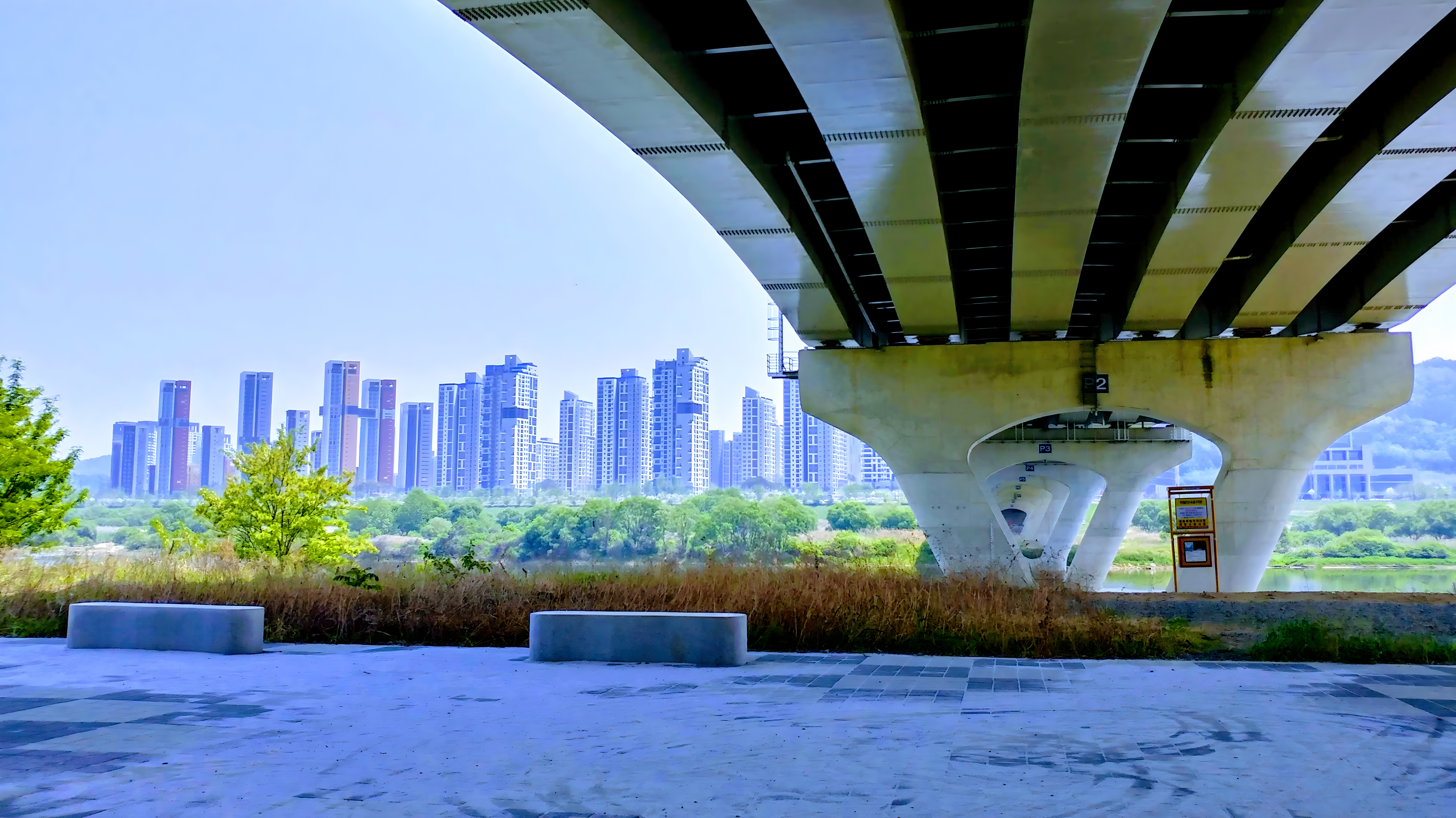 세종 햇무리교 다리아래 쉼터 #강 #강물 #금강 #다리 #햇무리교 #아파트 #세종시 [원본: 해상도 = 7968x4480, 크기 = 6.9MiB]