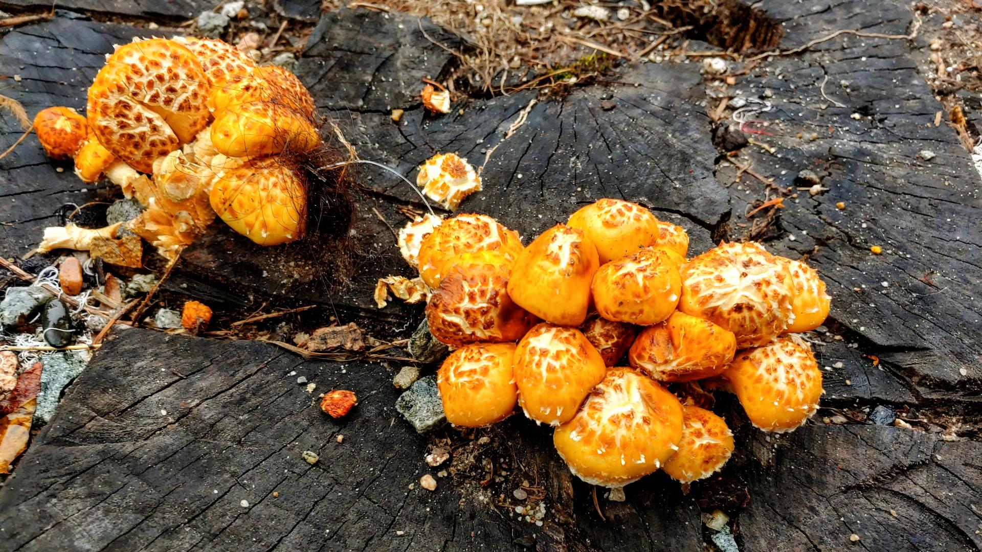 나무 그루터기에서 자라는 금빛비늘버섯(추정)