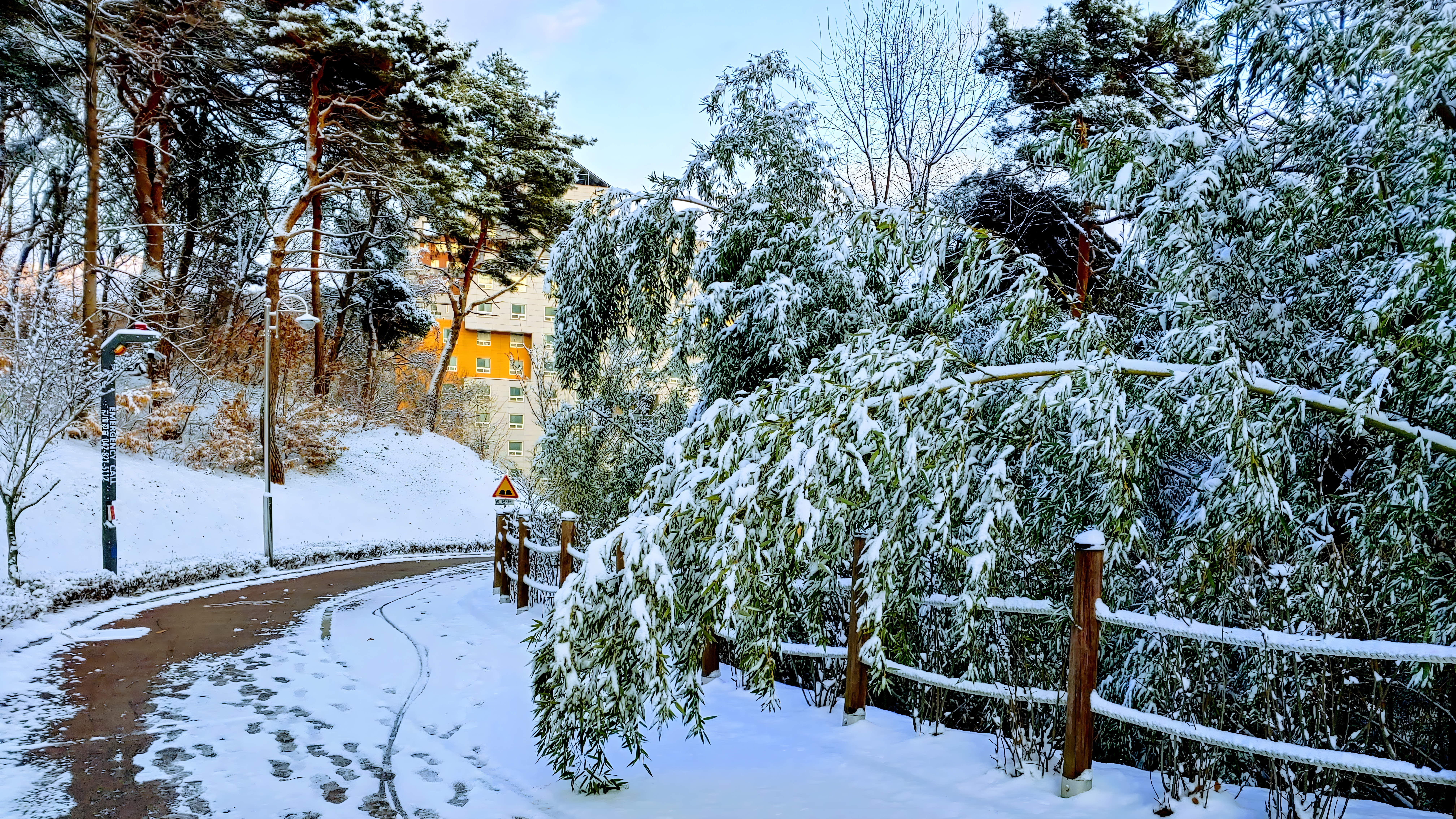 길가의 눈꽃 #눈 #설경 #나무 #대나무 #소나무 #울타리 [원본: 해상도 = 8064x4534, 크기 = 16.6MiB]