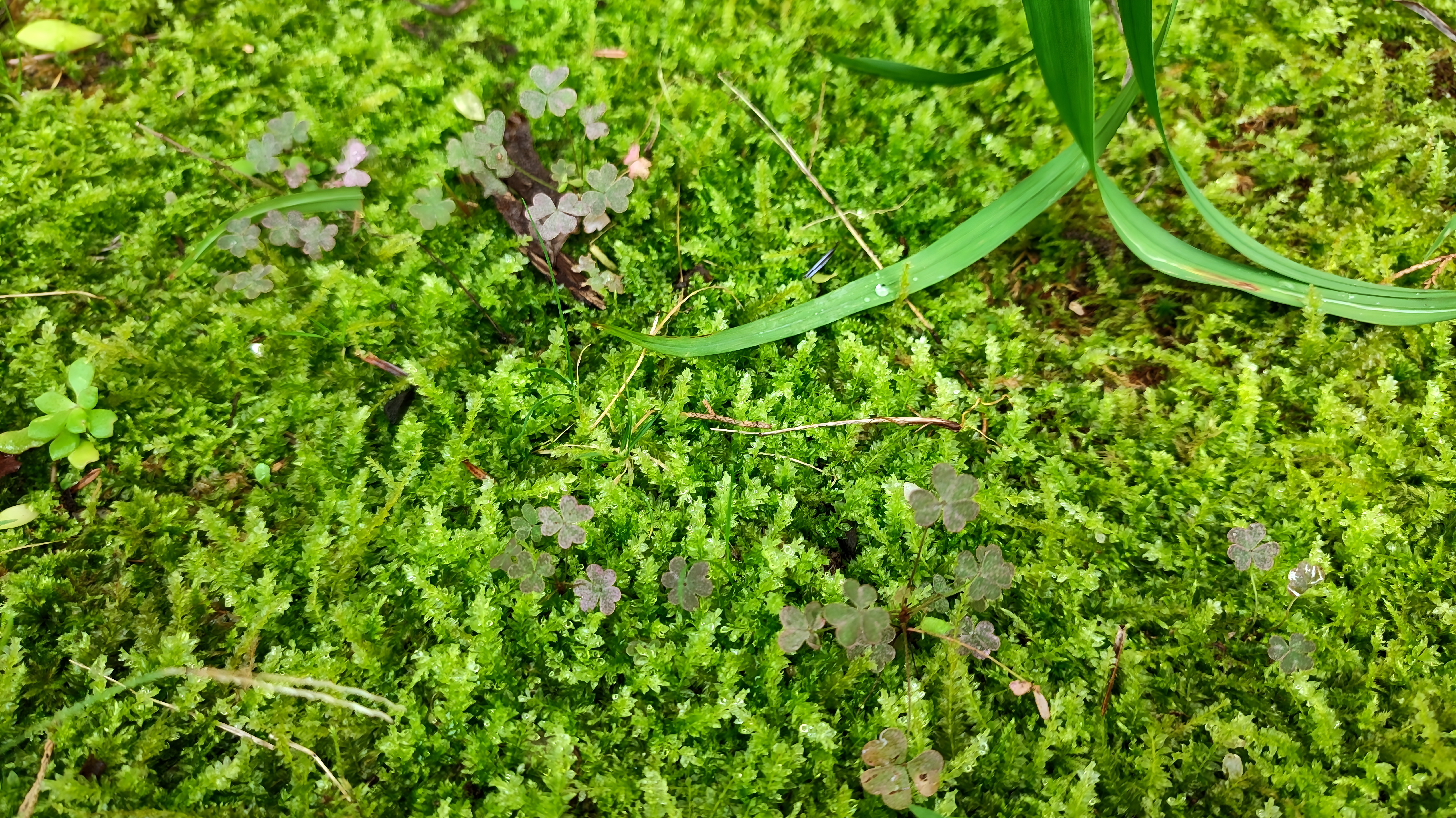 이끼밭에서 자라는 괭이밥 #이끼 #괭이밥 #물방울 #풀잎 [원본: 해상도 = 8000x4498, 크기 = 10MiB]