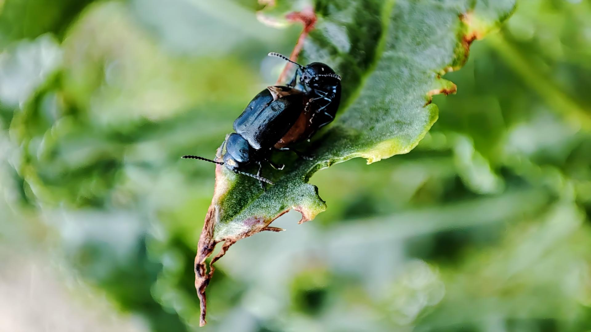 좀남색잎벌레의 사랑 #풀잎 #소리쟁이 #잎벌레 #좀남색잎벌레 [원본: 해상도 = 5184x2916, 크기 = 2.3MiB]
