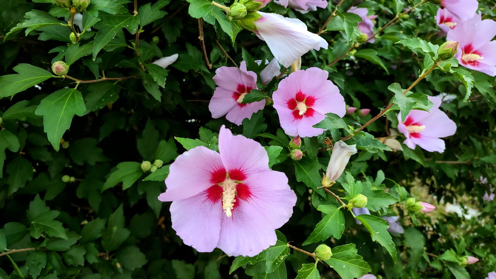 무궁화꽃을 배회하는 꿀벌 #벌 #일벌 #꿀벌 #양봉꿀벌 #꽃 #무궁화 [원본: 해상도 = 8000x4500, 크기 = 5.4MiB]