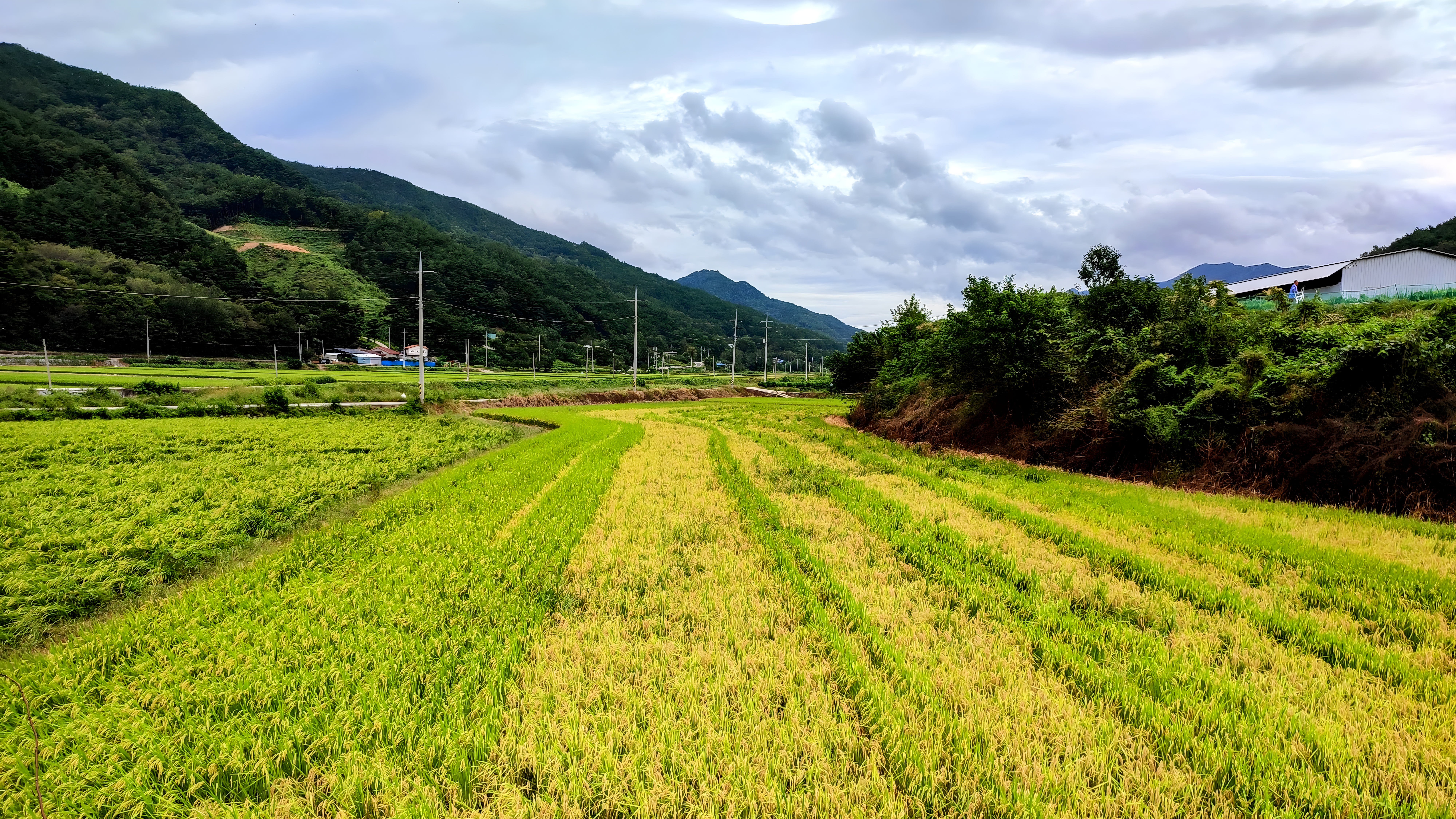 황금벼가 익어가는 시골의 가을 #풍경 #논 #벼논 #전봇대 #시골풍경 [원본: 해상도 = 8000x4500, 크기 = 13.9MiB]