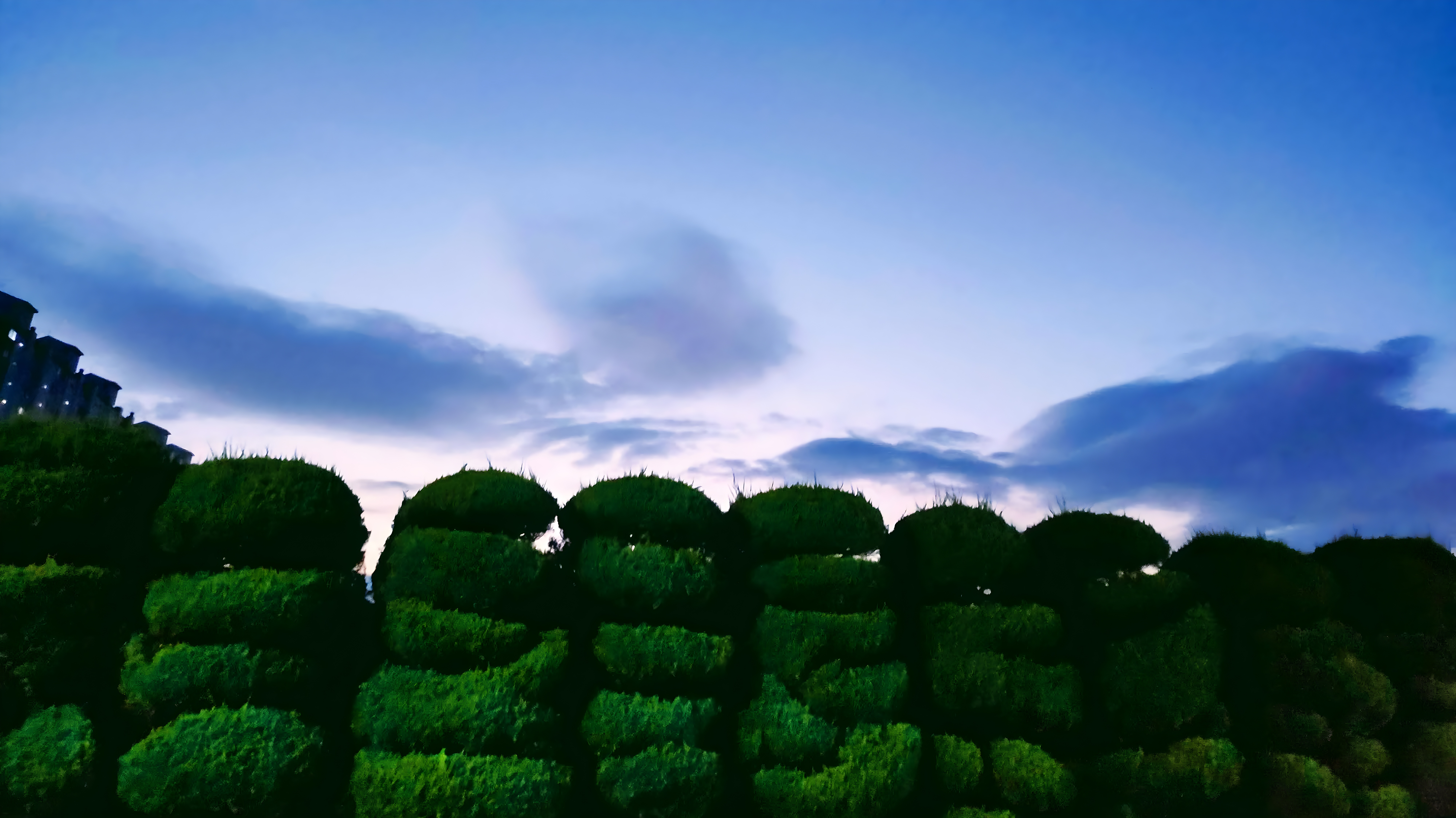 향나무 울타리 위로 내리는 어스름/어둠/ #울타리 #나무 #향나무 #구름 #어스름 [원본: 해상도 = 8000x4496, 크기 = 4.7MiB]