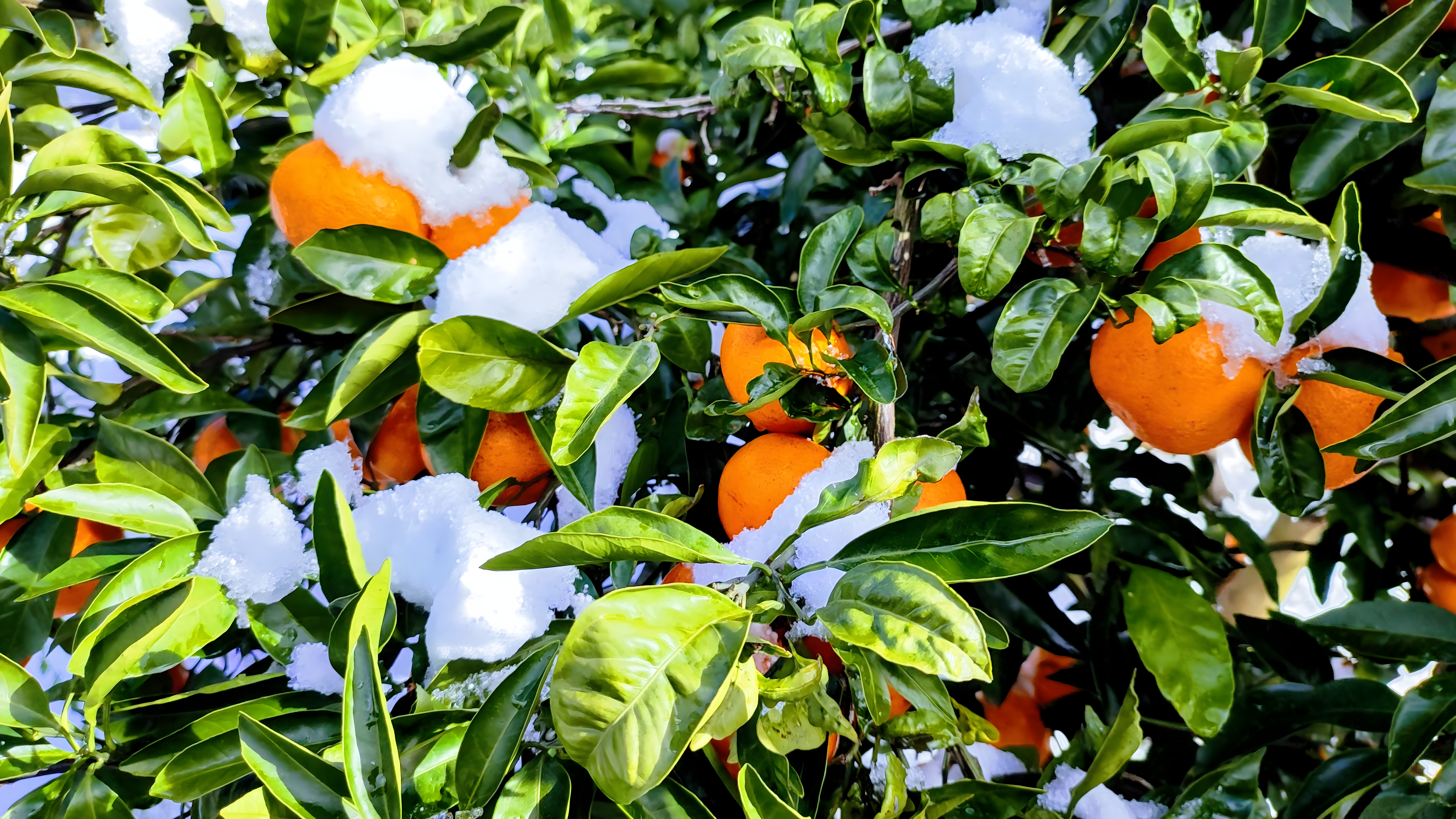 눈모자를 쓴 감귤 #과일 #감귤 #밀감 #나무 #감귤나무 #눈 [원본: 해상도 = 8000x4500, 크기 = 6.7MiB]