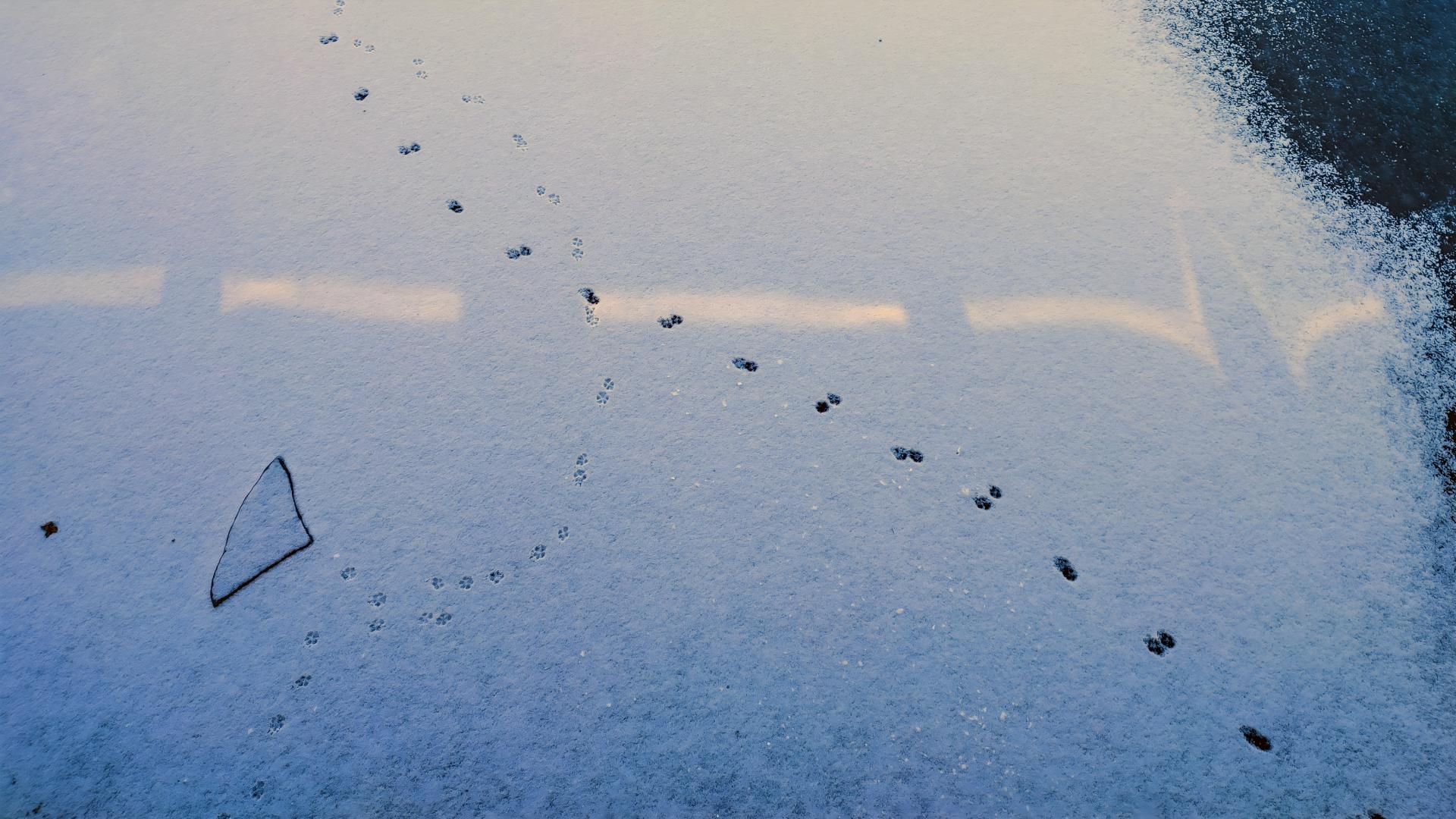 냇물 얼음에 쌓인 눈위로 난 짐승 발자국 #설경 #하천 #눈 #얼음 #발자국 [원본: 해상도 = 8000x4500, 크기 = 13.9MiB]