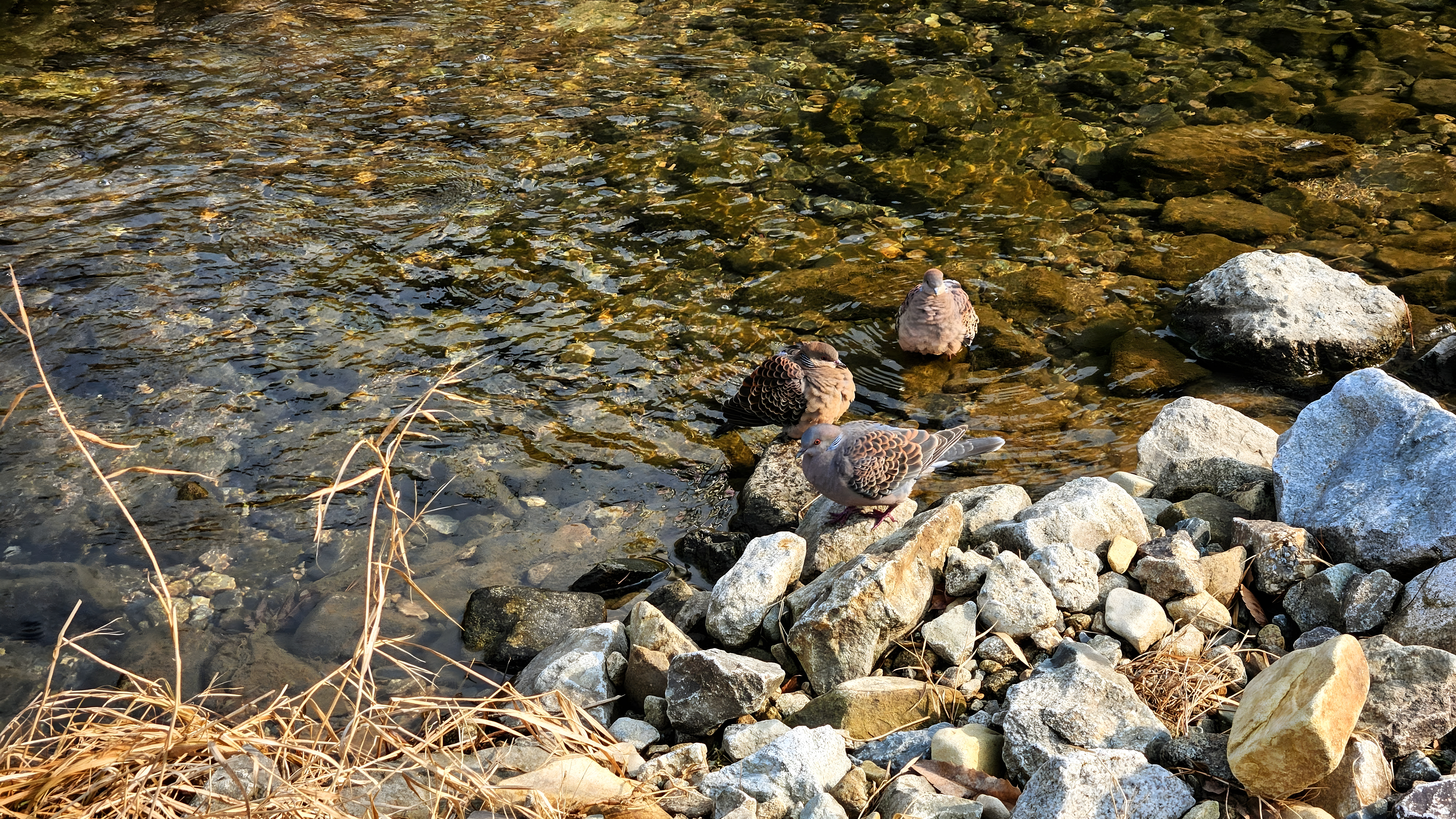 냇가에서 목욕하는 멧비둘기 무리 #냇물 #새 #비둘기 #멧비둘기 #바위 [원본: 해상도 = 8000x4500, 크기 = 13.3MiB]