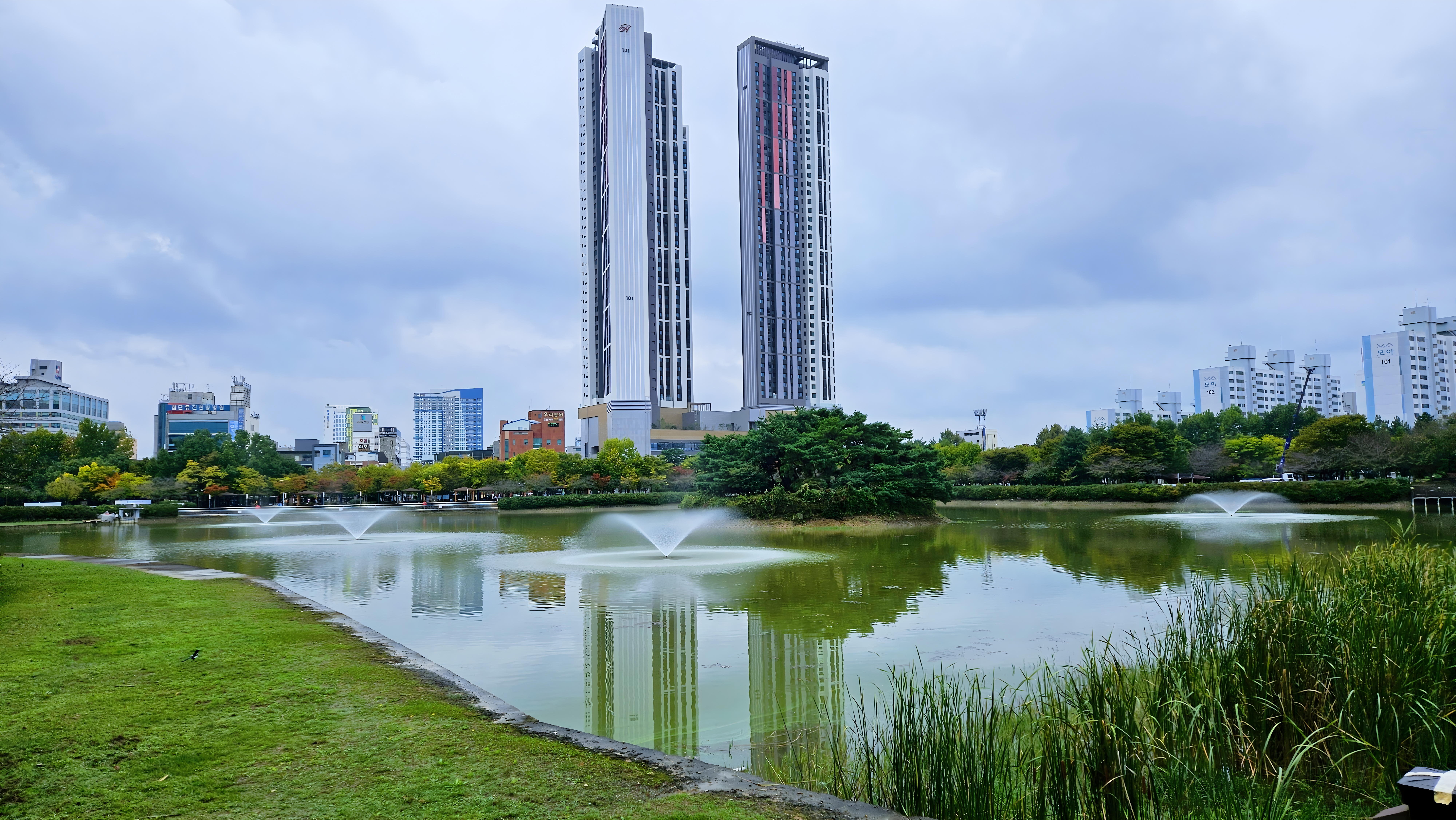 광주 쌍암공원 풍경 #호수 #연못 #분수 #공원 #물거울 #아파트 #힐스테이트첨단 [원본: 해상도 = 8000x4504, 크기 = 8.3MiB]