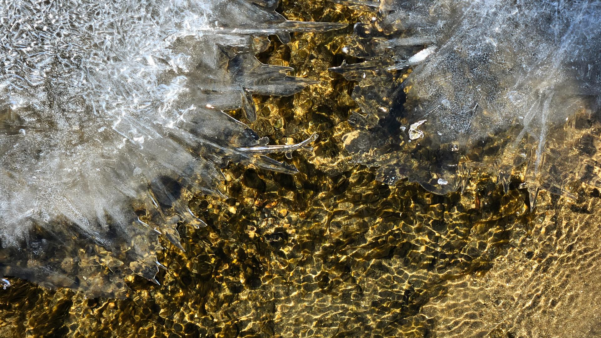 얼음이 언 냇가 풍경 #냇물 #얼음 [원본: 해상도 = 8000x4504, 크기 = 12.7MiB]