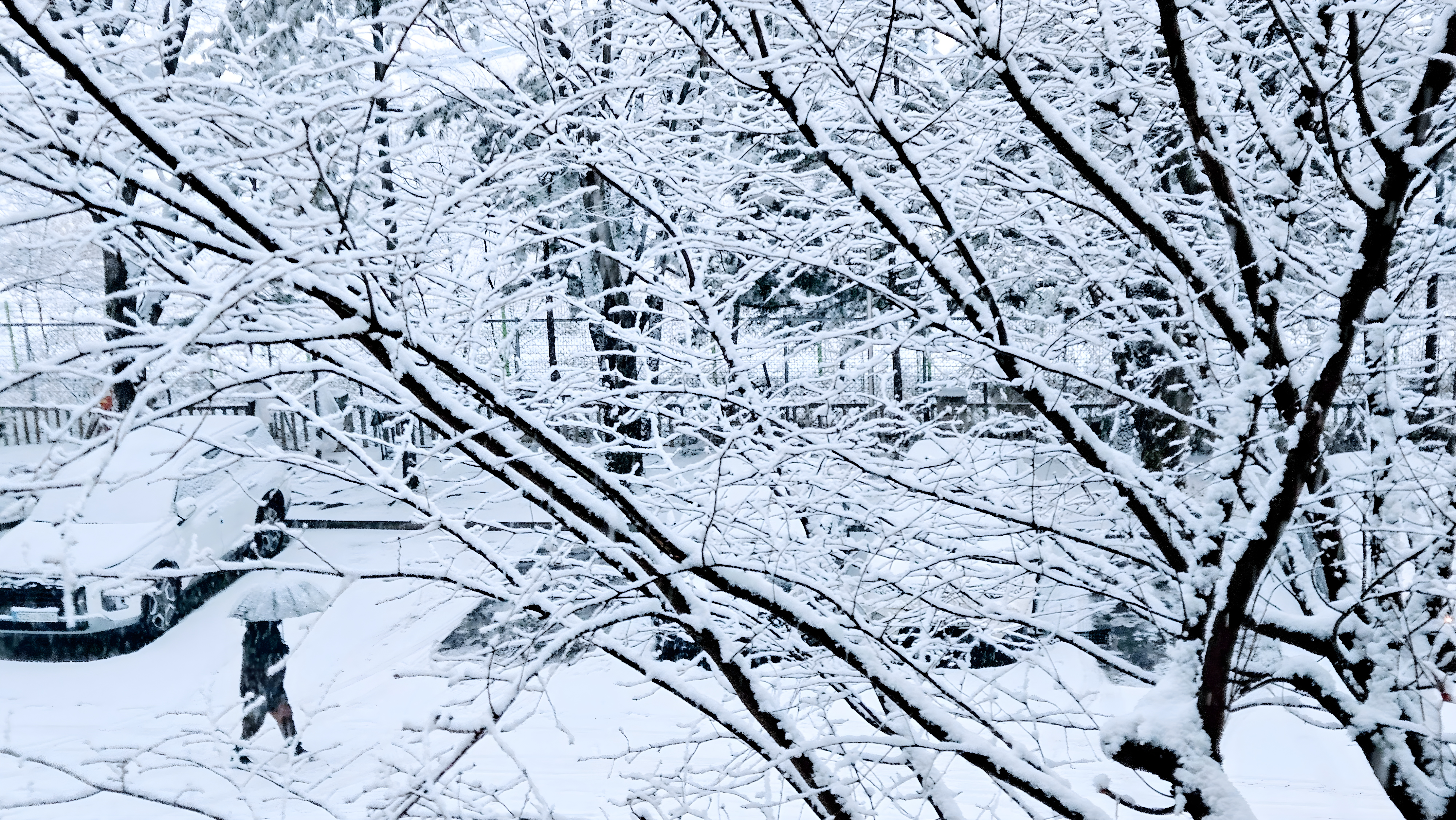 눈내리는 주차장 풍경 #설경 #눈 #눈꽃 #사람 #우산 #자동차 #나뭇가지 [원본: 해상도 = 8000x4504, 크기 = 12.5MiB]