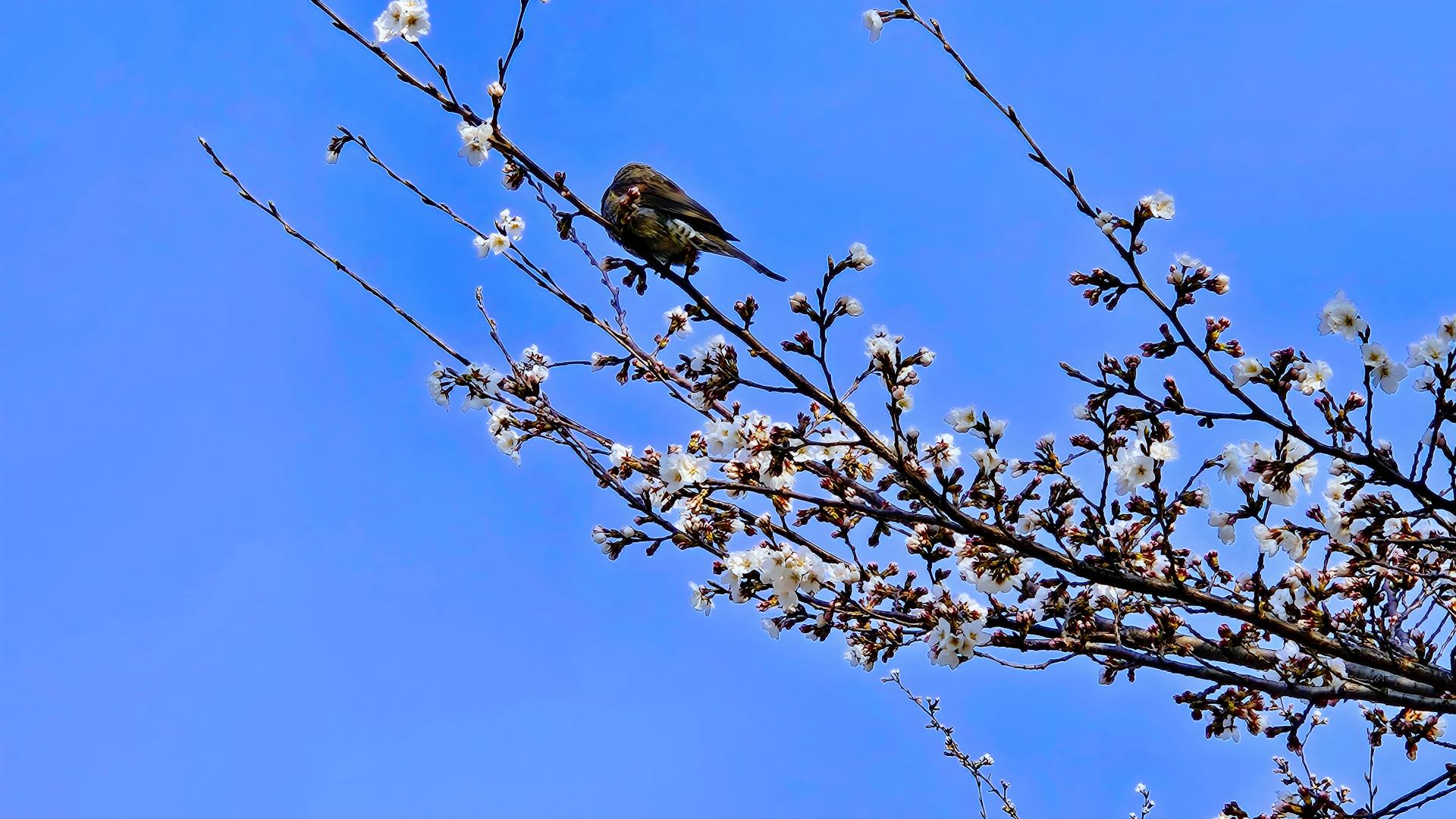 벚꽃을 따서 꿀을 먹고 버리는 직박구리.