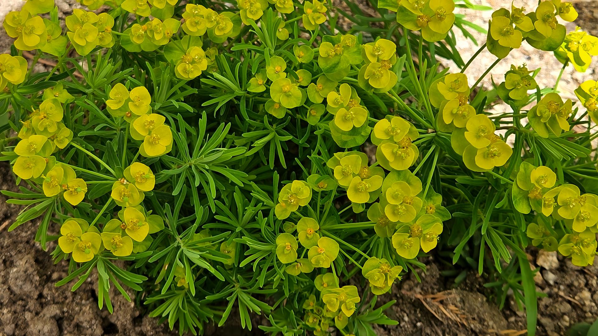 노란색 꽃이 예쁜 솔잎대극의 잎은 솔잎을 닮았다. #풀잎 #꽃 #솔잎대극 [원본: 해상도 = 8000x4504, 크기 = 8.4MiB]
