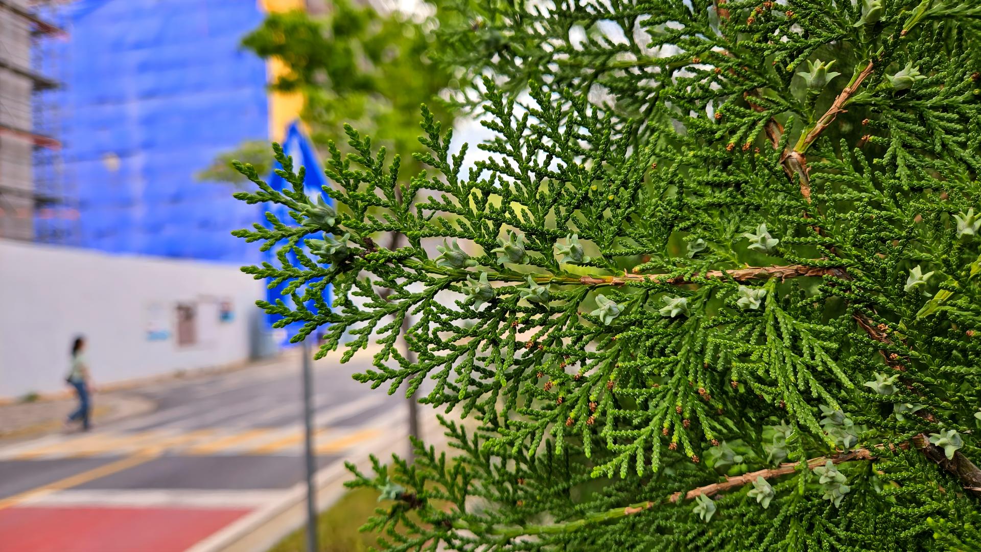 열매를 맺기 시작한 측백나무 #나무 #나뭇잎 #측백나무 #열매 #풋열매 #사람 [원본: 해상도 = 8000x4504, 크기 = 8.8MiB]