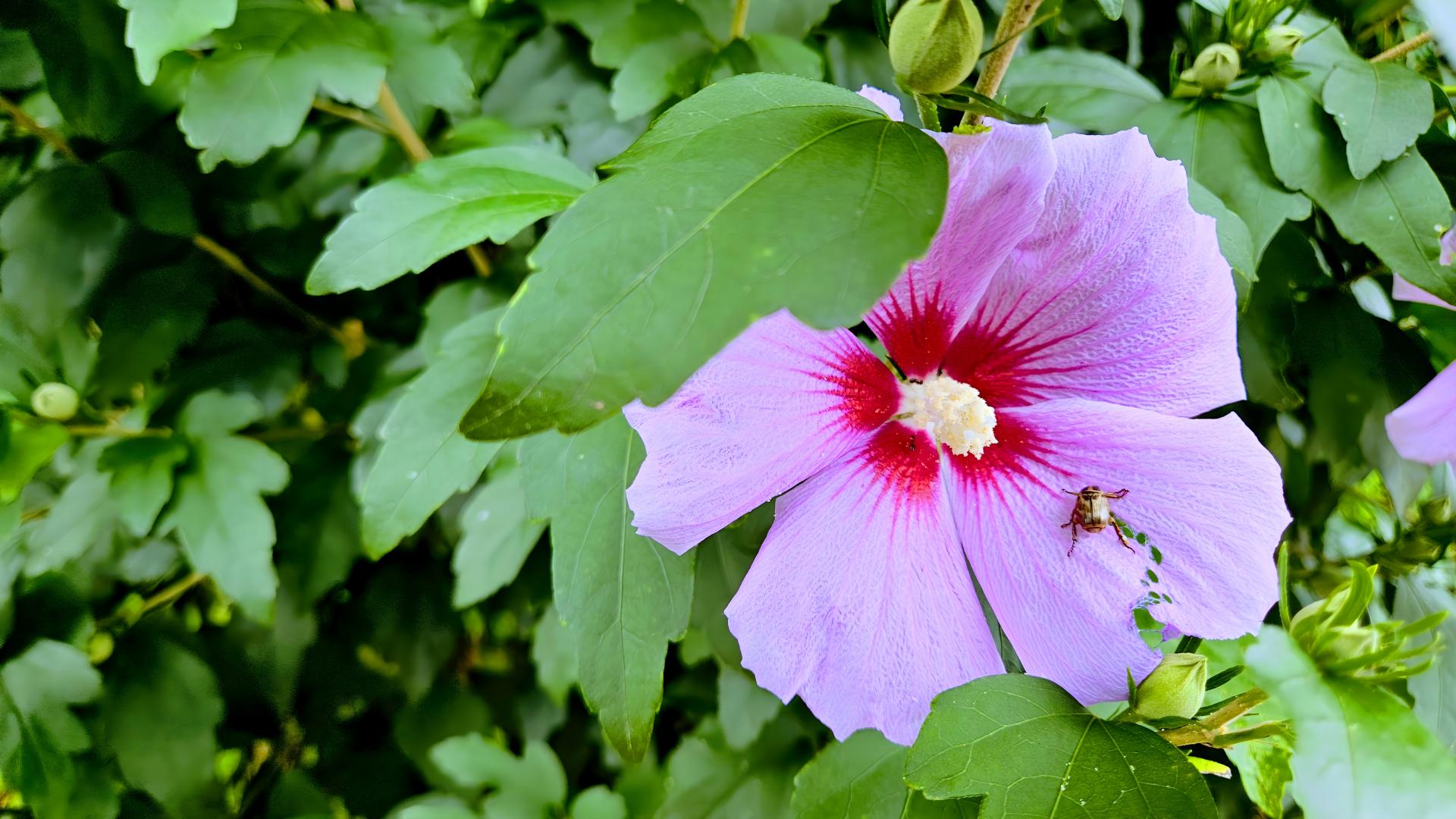 무궁화 꽃을 파먹은 등얼룩풍뎅이 #꽃 #무궁화 #풍뎅이과 #등얼룩풍뎅이 [원본: 해상도 = 8000x4504, 크기 = 7.3MiB]
