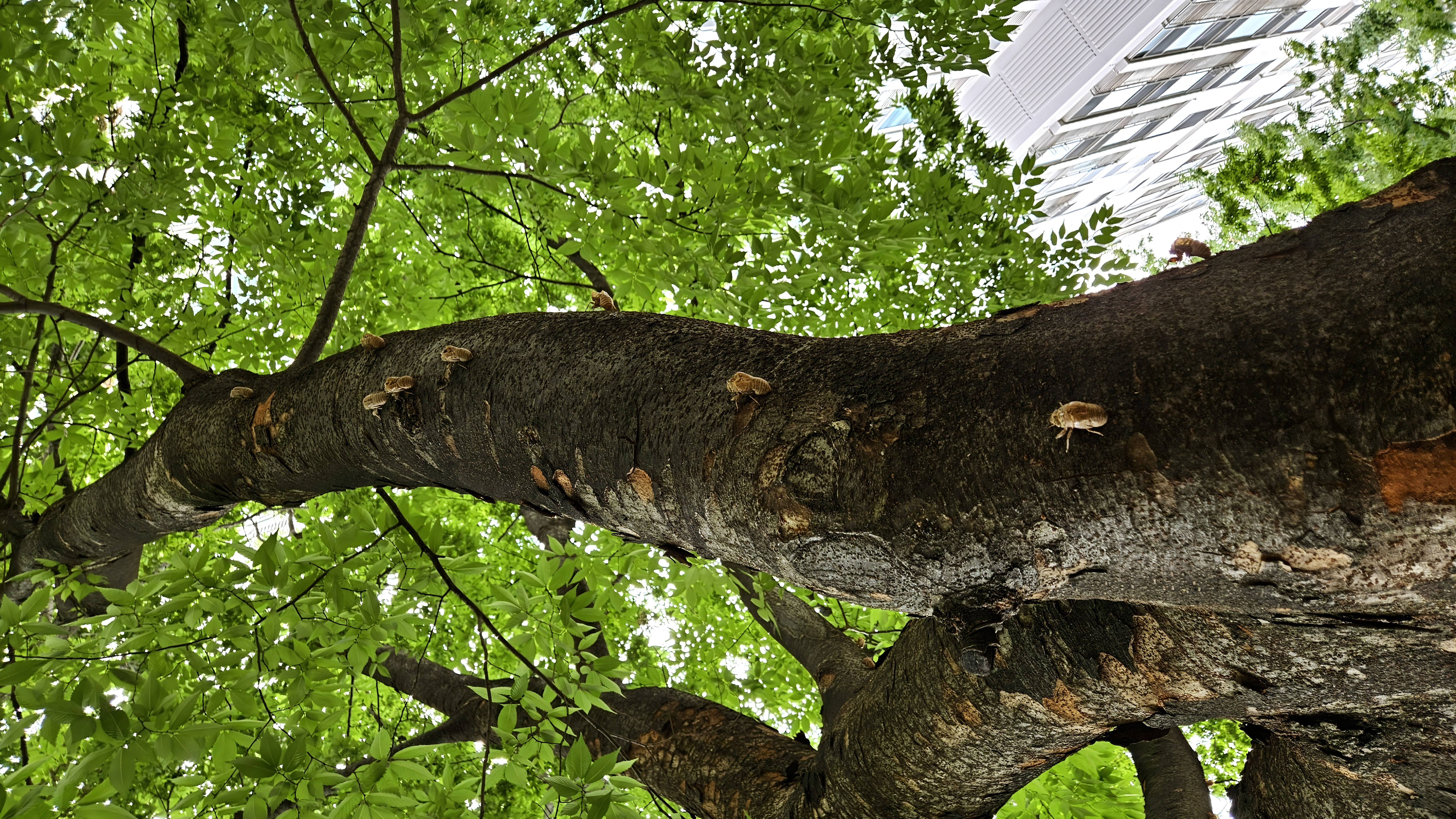 가로수 줄기로 줄지은 금선탈각/金蟬脫殼/의 흔적(매미허물)