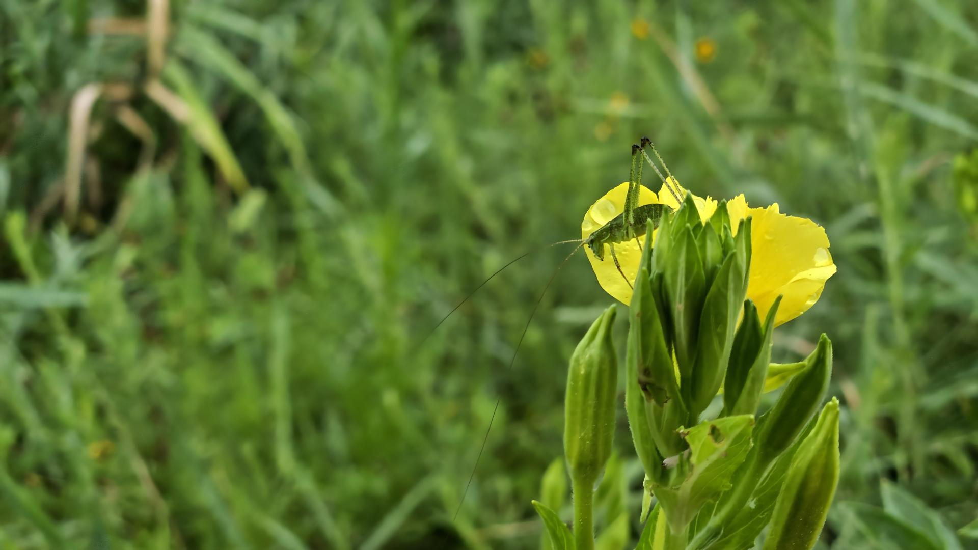달맞이꽃과 실베짱이 약충 #꽃 #달맞이꽃 #약충 #베짱이 #실베짱이 [원본: 해상도 = 8000x4504, 크기 = 5.6MiB]