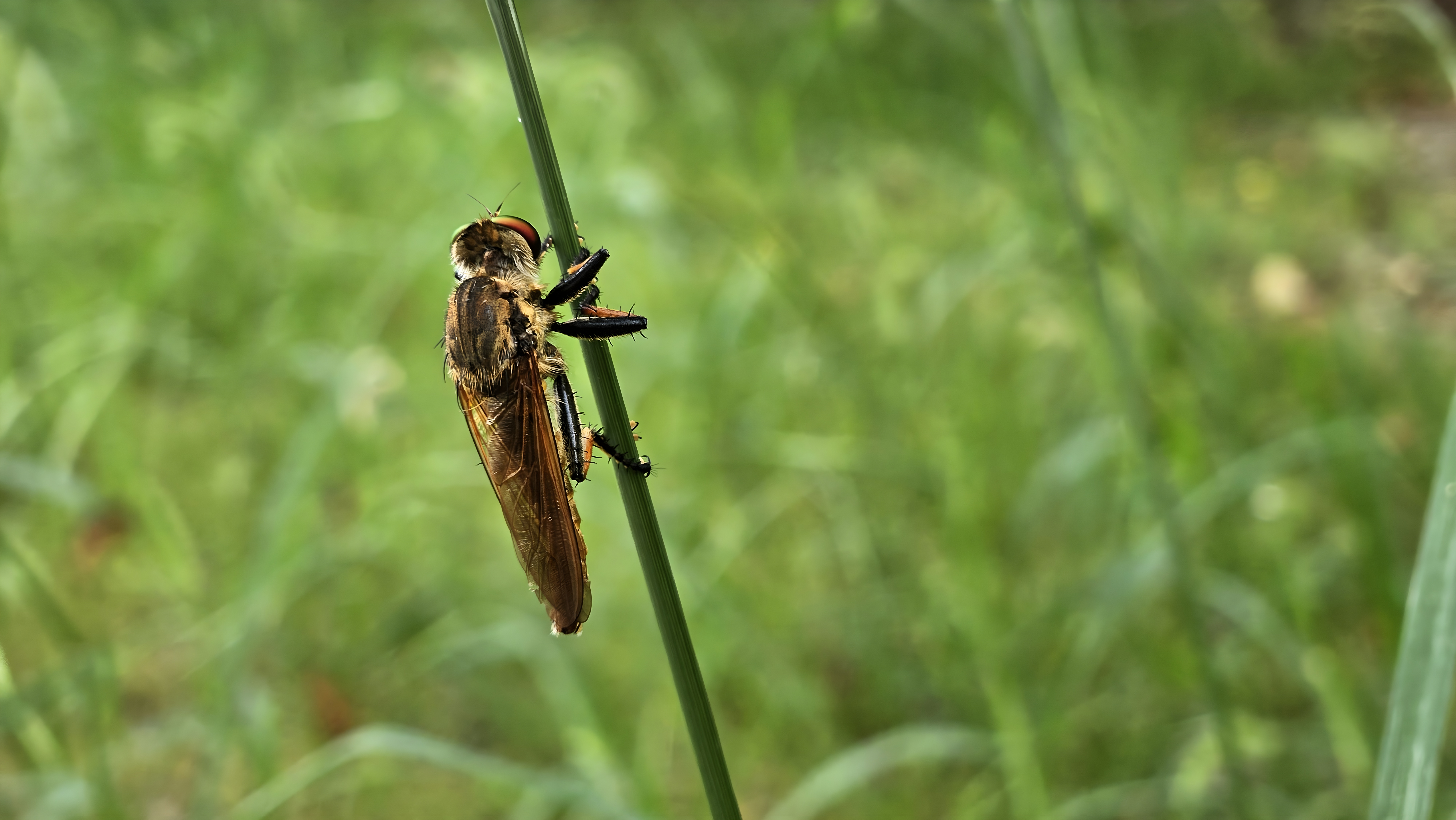 풀줄기에 붙은 왕파리매 #파리매상과 #왕파리매 [원본: 해상도 = 8000x4504, 크기 = 5.3MiB]
