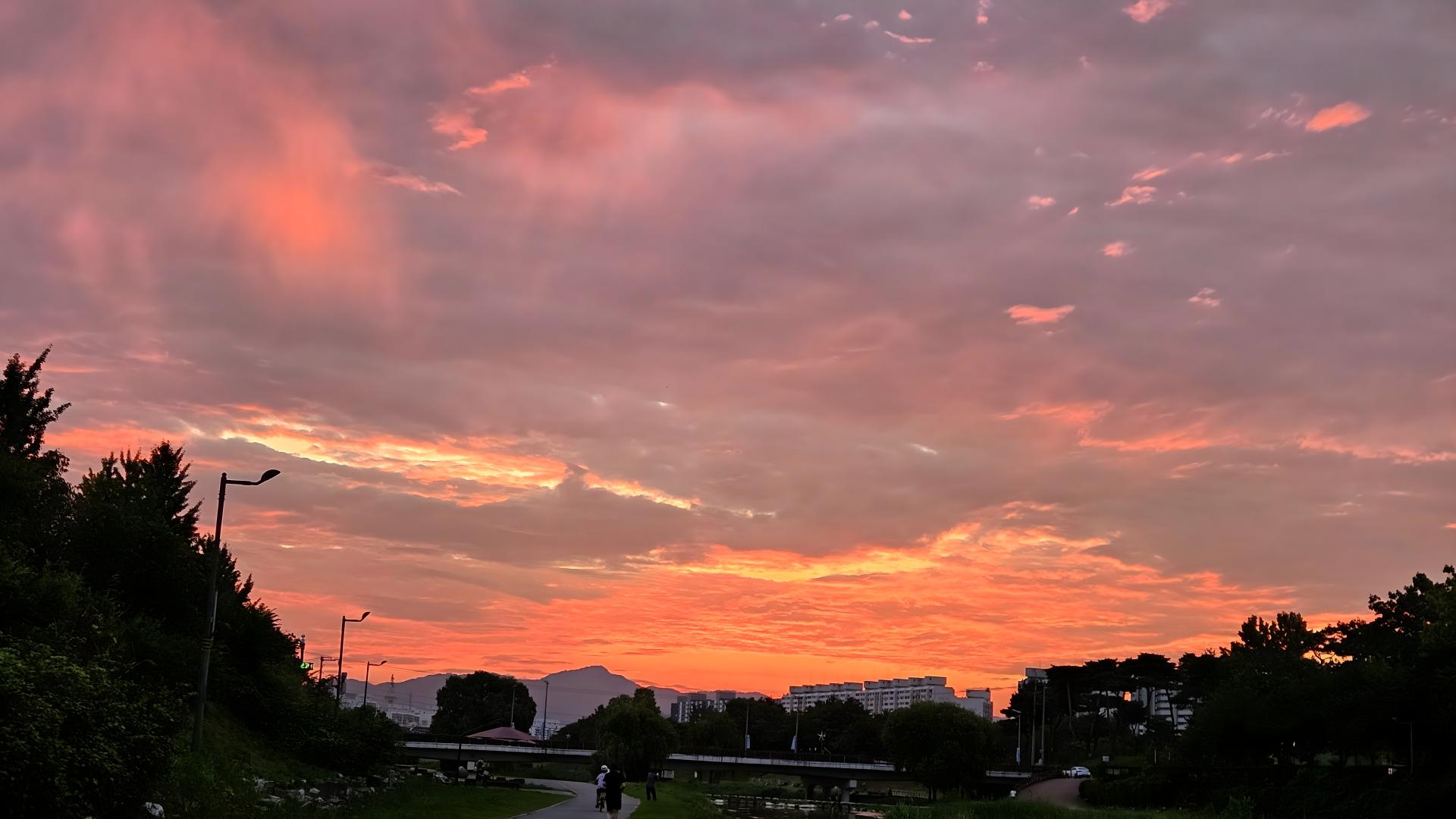짙붉은 아침 노을 #풍경 #노을 #아침노을 #구름 #어은교 #어은공원 #사람 [원본: 해상도 = 8000x4504, 크기 = 5.1MiB]
