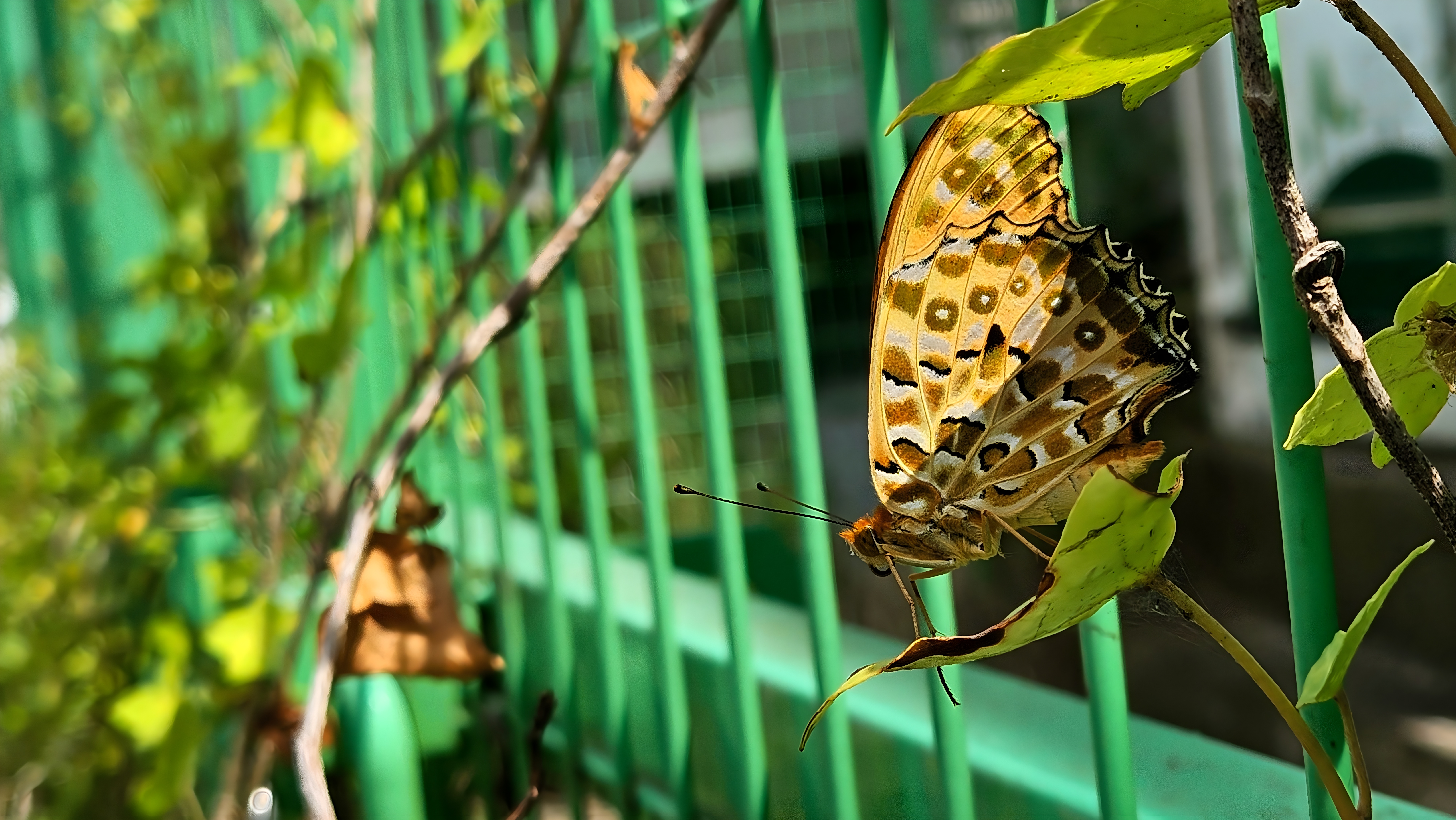 울타리에서 쉬는 암끝검은표범나비 #울타리 #나비 #암끝검은표범나비 [원본: 해상도 = 8000x4504, 크기 = 6.8MiB]