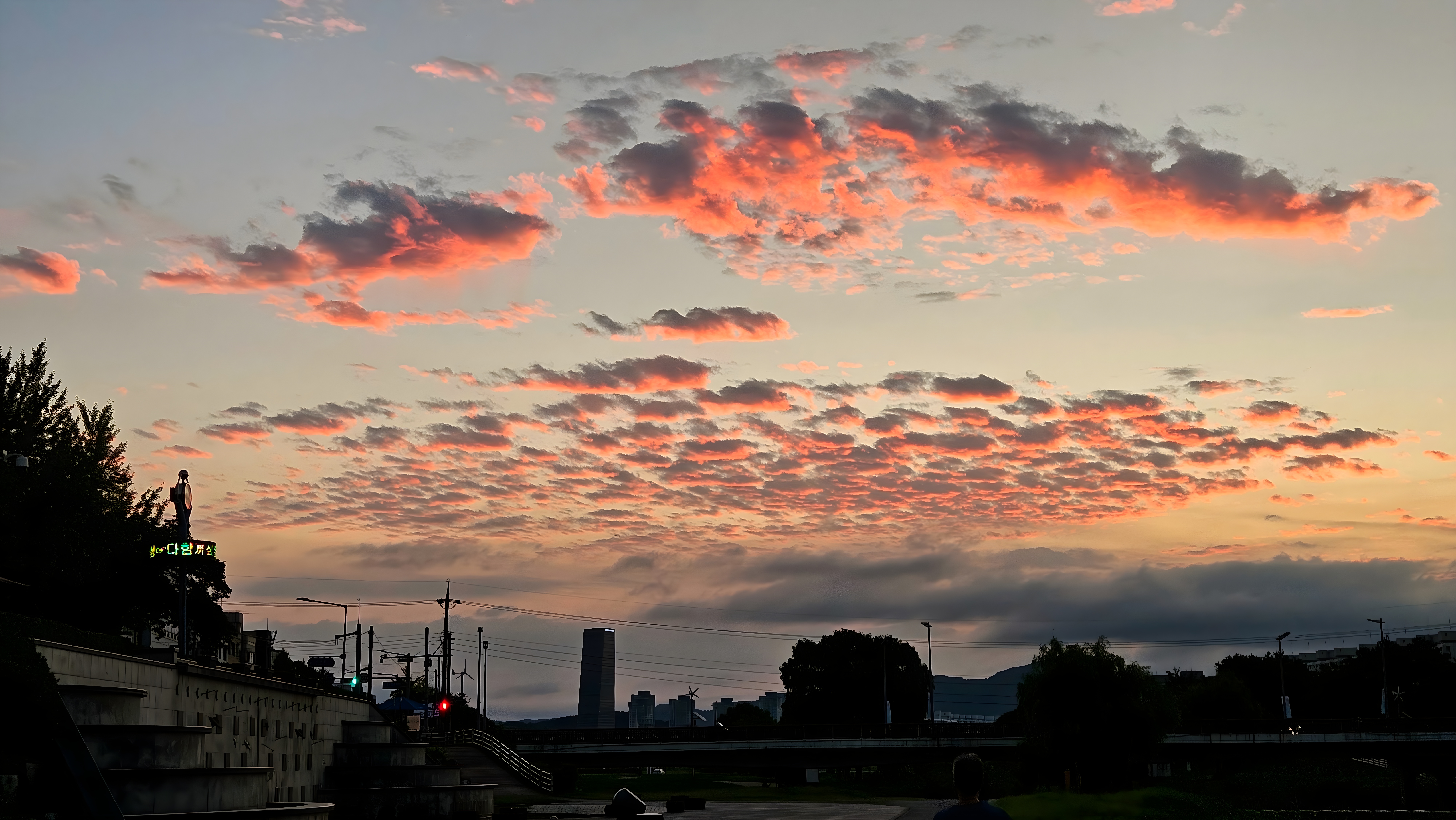붉은 아침 노을 #풍경 #노을 #아침노을 #구름 #어은교 #어은공원 [원본: 해상도 = 8000x4504, 크기 = 5.3MiB]