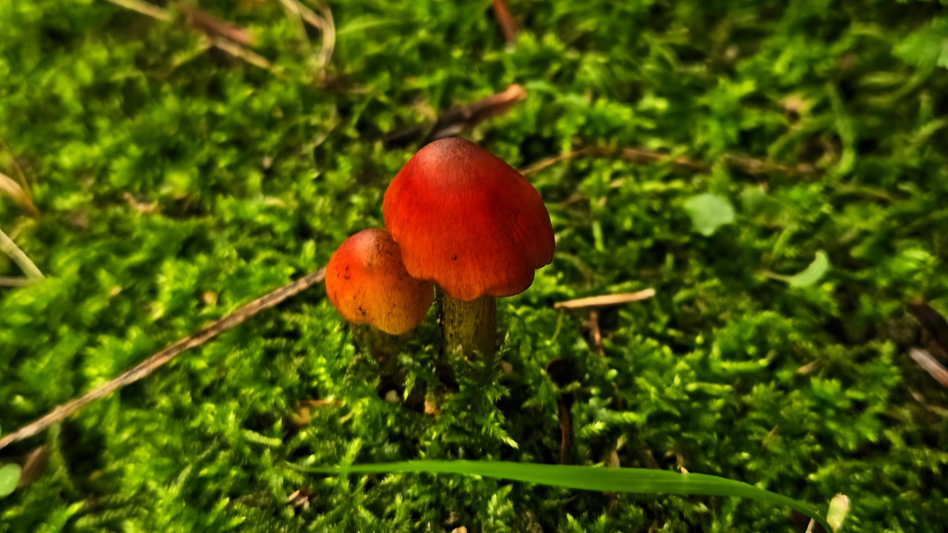 이끼에서 자란 붉은 버섯(추정: 붉은산벚꽃버섯) #이끼 #버섯 #붉은산벚꽃버섯 [원본: 해상도 = 8000x4504, 크기 = 5MiB]