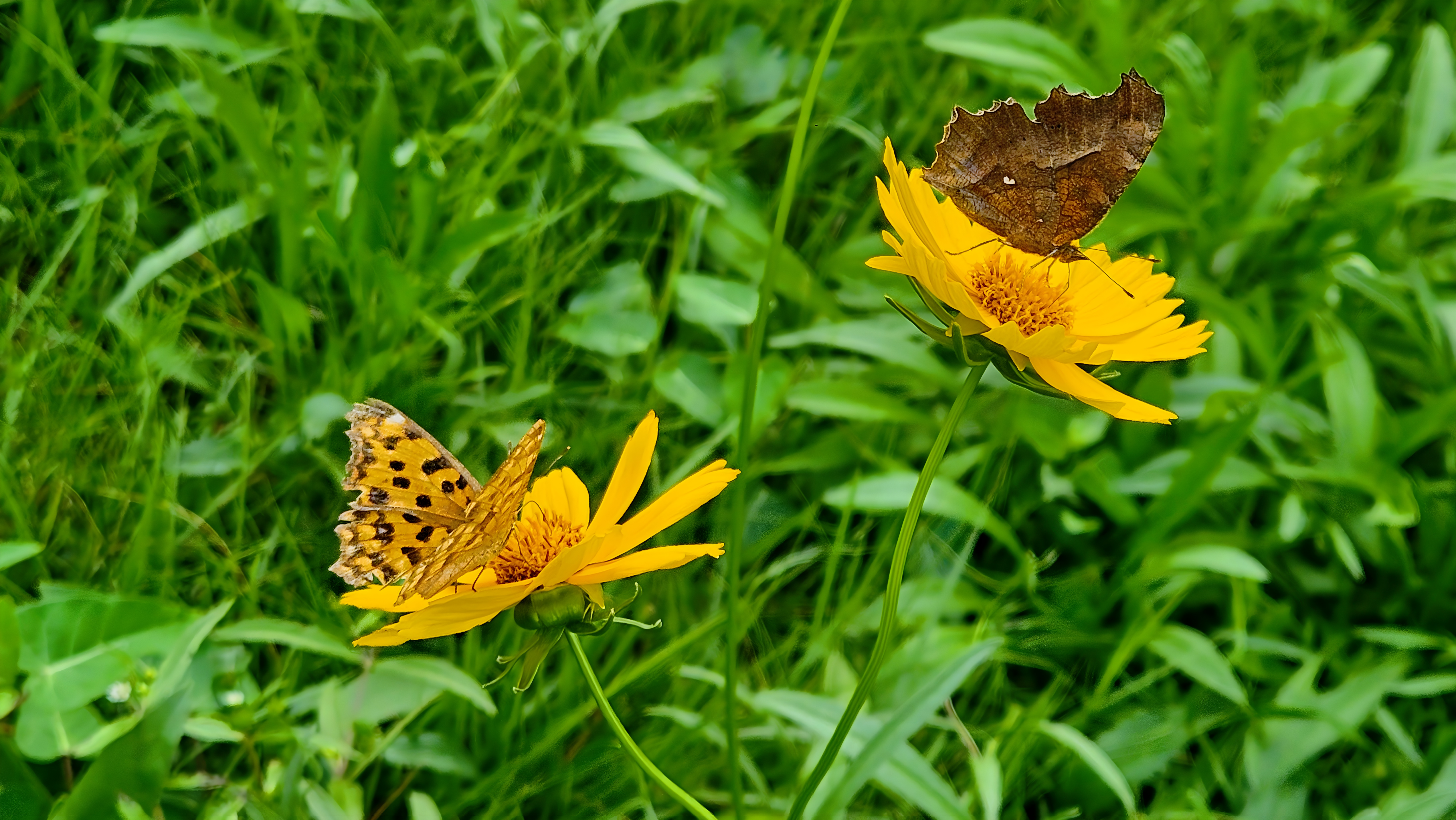 큰금계국 꽃에 앉은 네발나비 두 마리 #꽃 #큰금계국 #나비 #네발나비 [원본: 해상도 = 8000x4504, 크기 = 6.4MiB]