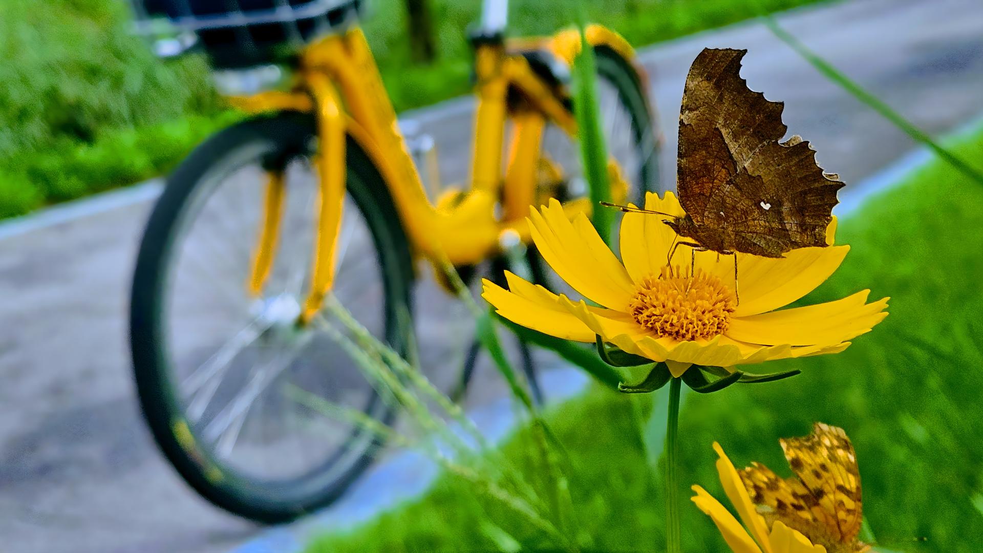 자전거와 큰금계국 꽃에 앉은 네발나비 #꽃 #큰금계국 #나비 #네발나비 #자전거 [원본: 해상도 = 8000x4504, 크기 = 8.8MiB]