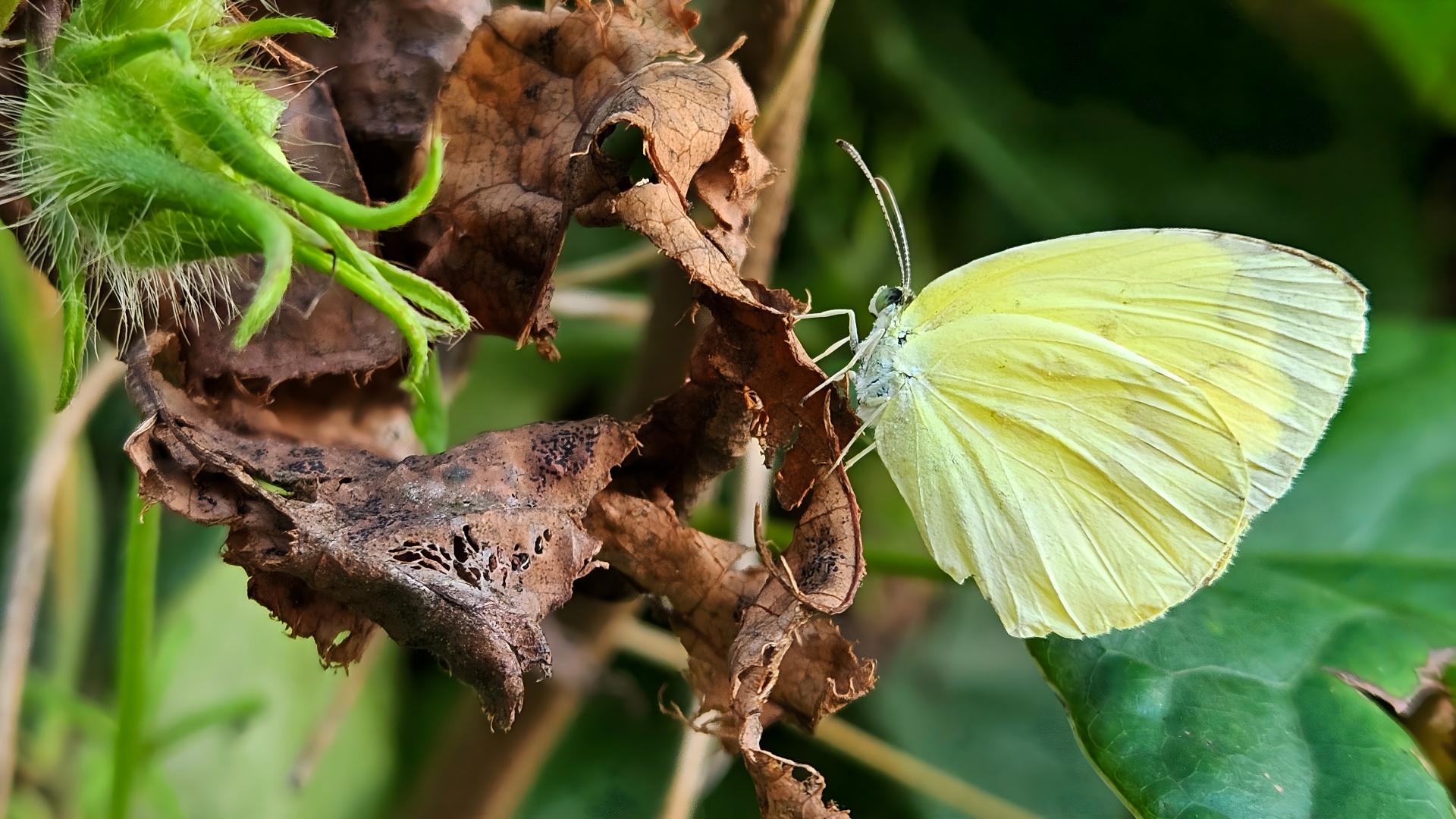 미국나팔꽃 마른 잎에서 쉬는 남방노랑나비 #미국나팔꽃 #나비 #남방노랑나비 [원본: 해상도 = 8000x4504, 크기 = 8.4MiB]
