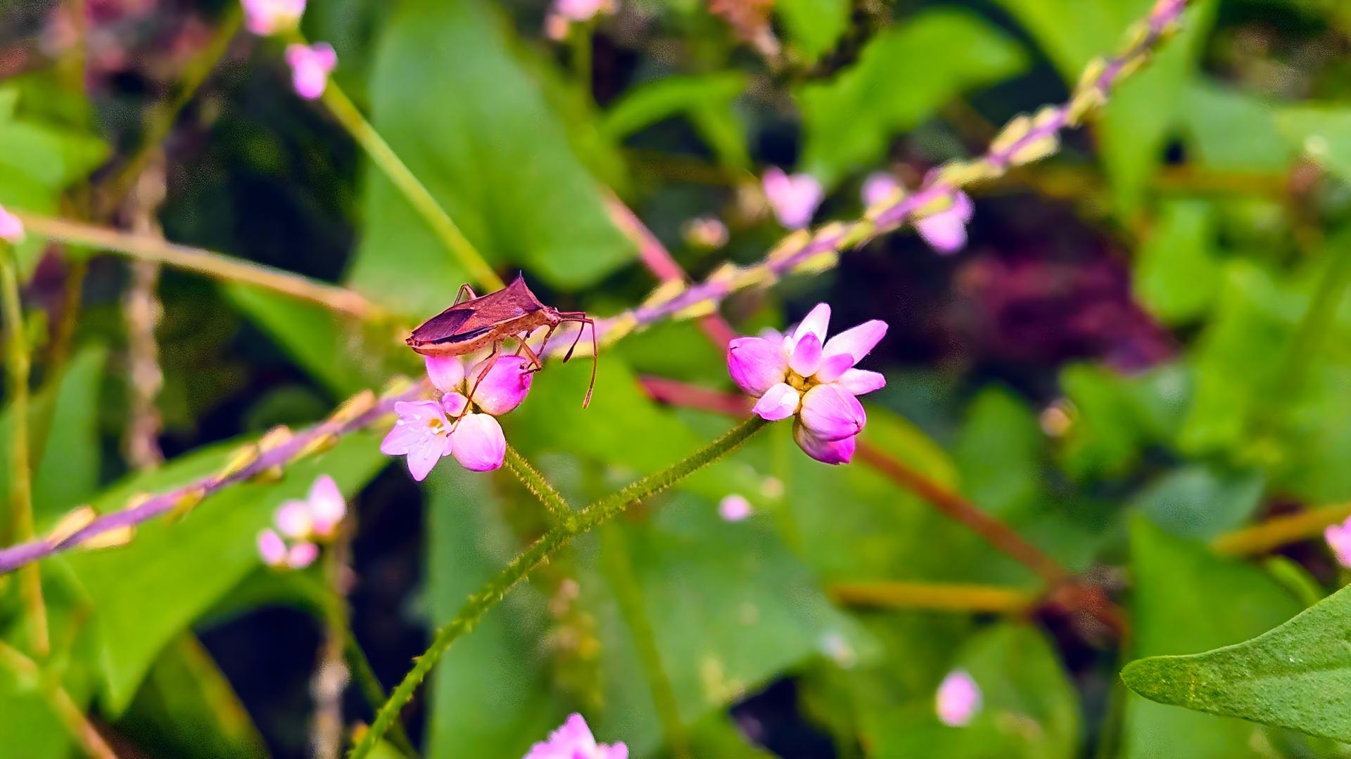가시덩굴여뀌 꽃의 우리가시허리노린재 #노린재 #우리가시허리노린재 #꽃 #가시덩굴여뀌 [원본: 해상도 = 8000x4504, 크기 = 7.2MiB]