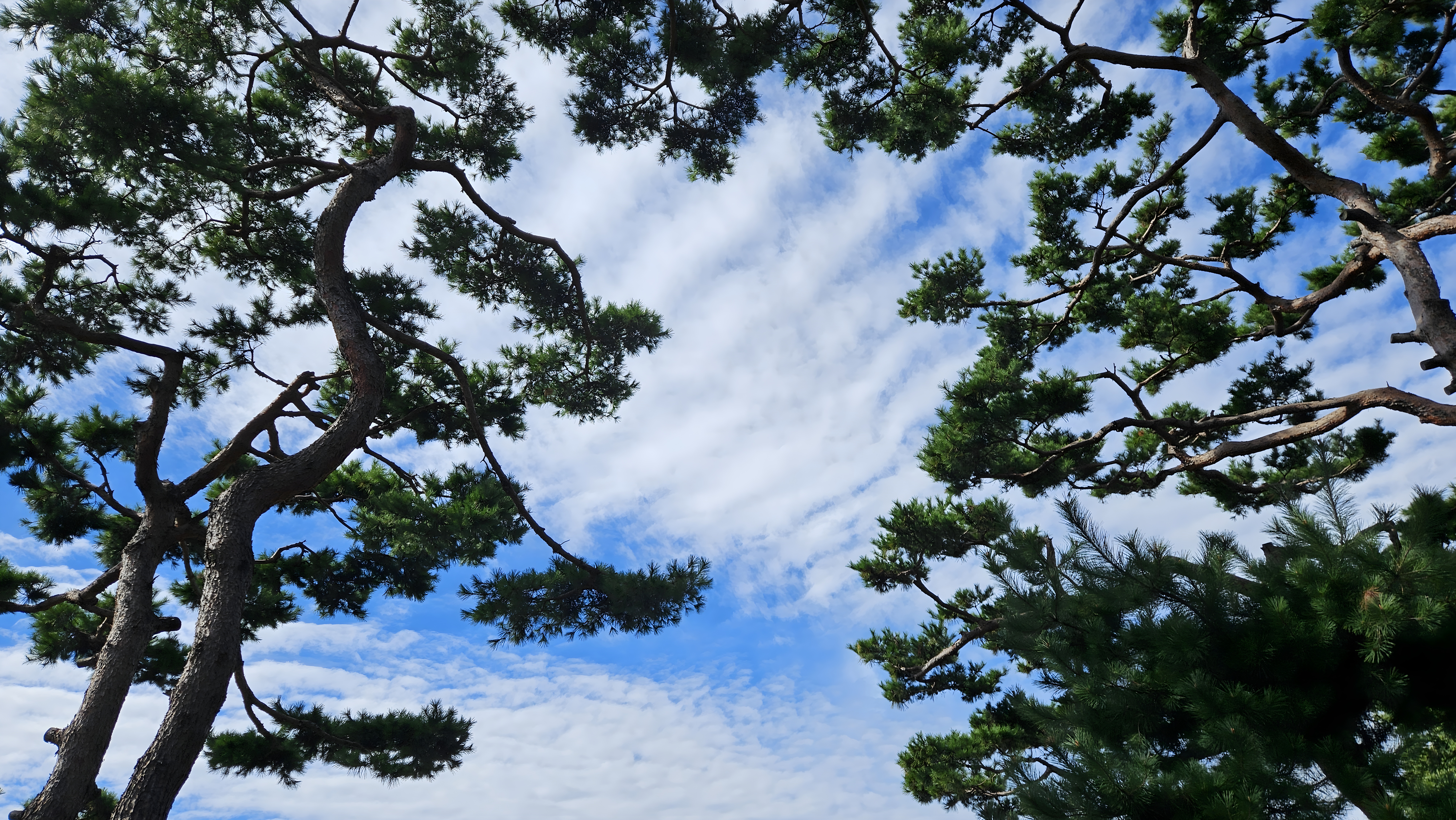 소나무 사이로 오는 가을 하늘과 구름 #나무 #소나무 #하늘 #구름 [원본: 해상도 = 8000x4504, 크기 = 12.3MiB]