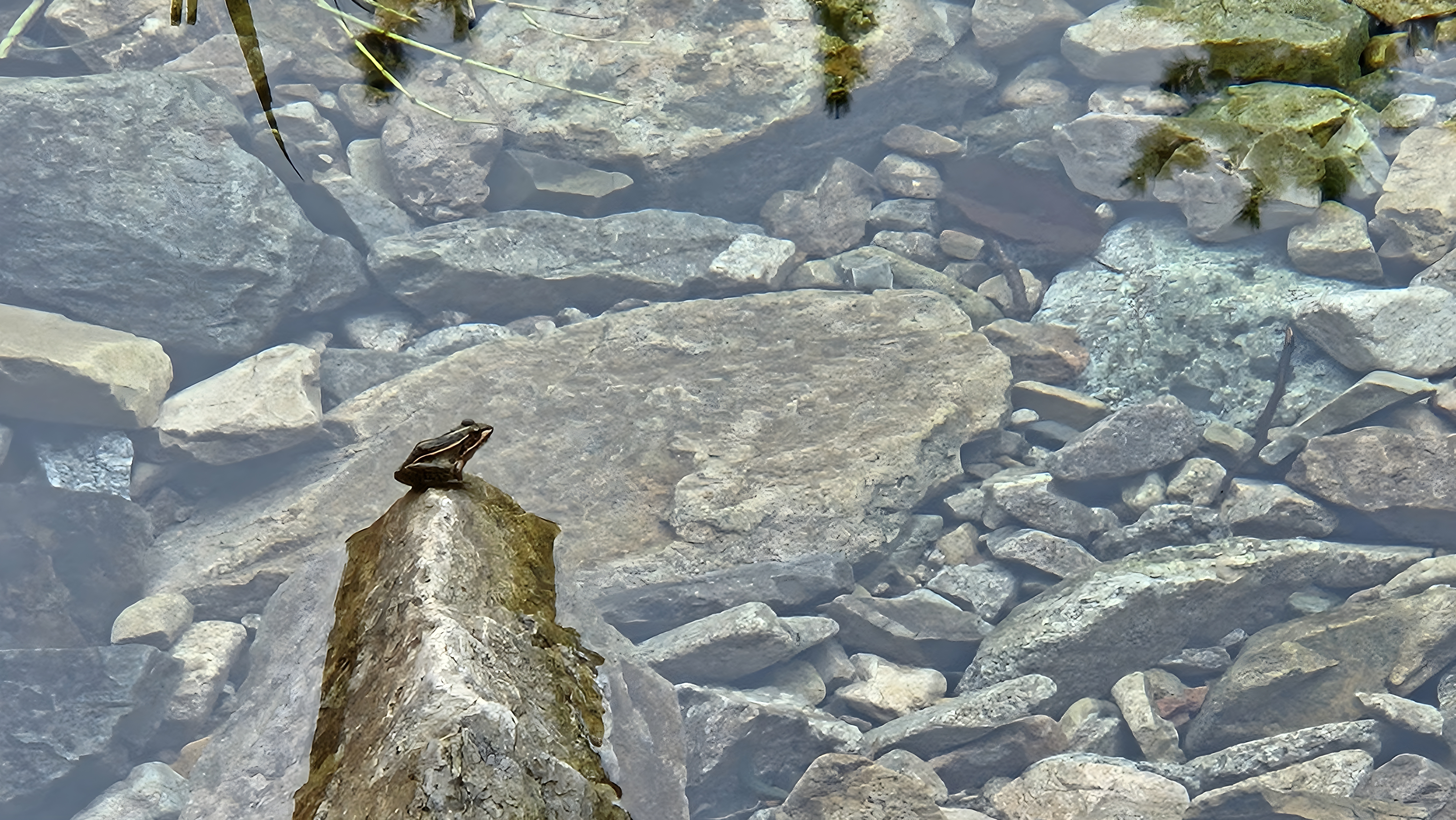 계곡 바위에서 쉬는 개구리 #하천 #냇물 #바위 #개구리 #참개구리 [원본: 해상도 = 8000x4504, 크기 = 7.2MiB]