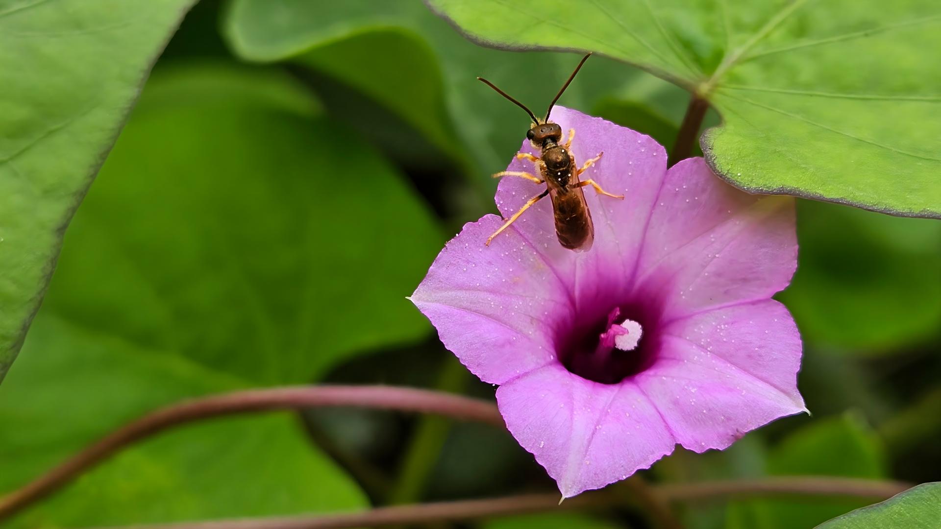 별나팔꽃에 앉은 구리꼬마꽃벌 #꽃 #별나팔꽃 #벌 #꼬마꽃벌 #구리꼬마꽃벌 [원본: 해상도 = 8000x4504, 크기 = 4.5MiB]