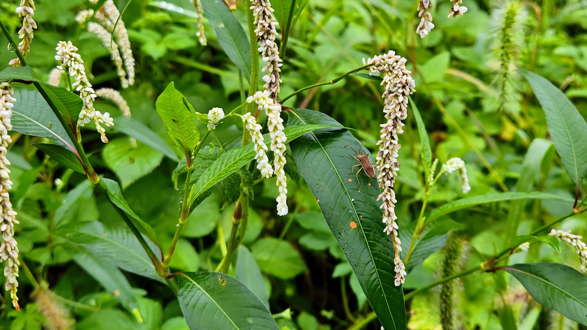 흰여뀌 잎에서 쉬는 우리가시허리노린재