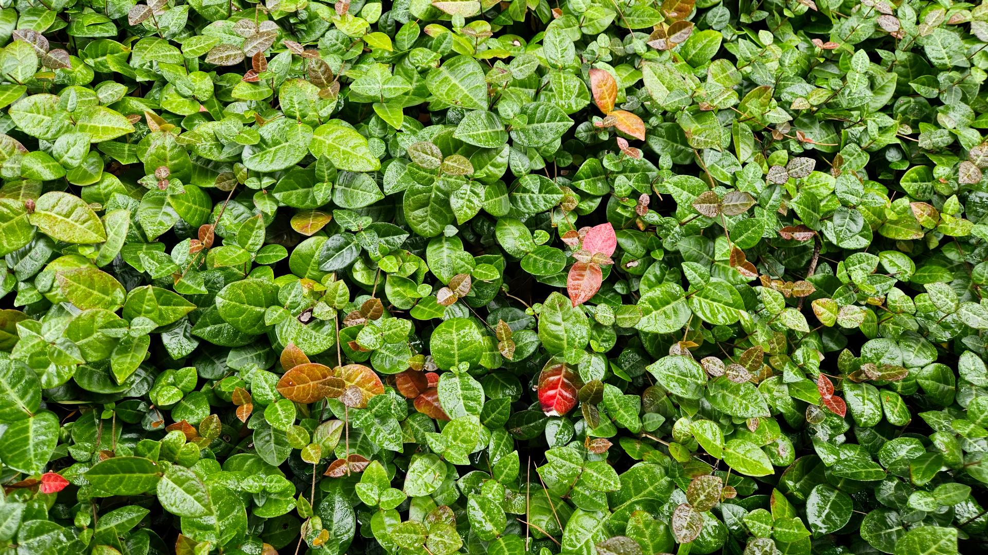 단풍이 들기 시작하는 빗속의 마삭줄 군락 #물방울 #단풍 #잎 #풀잎 #마삭줄 [원본: 해상도 = 8000x4504, 크기 = 12.9MiB]