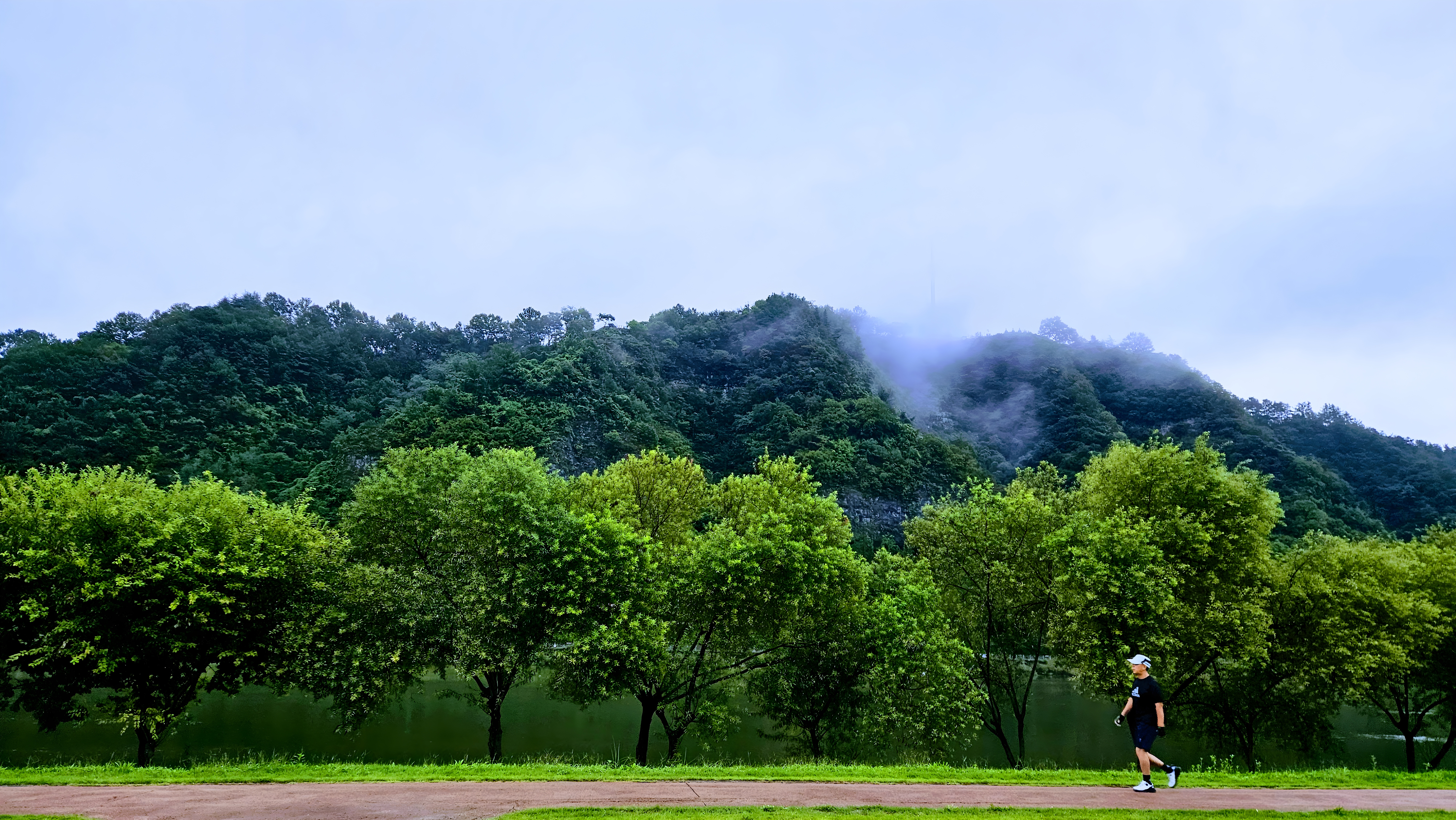 안개낀 남강 산책로 #사람 #산책로 #남강 #강물 #산 #안개 [원본: 해상도 = 8000x4504, 크기 = 8.9MiB]