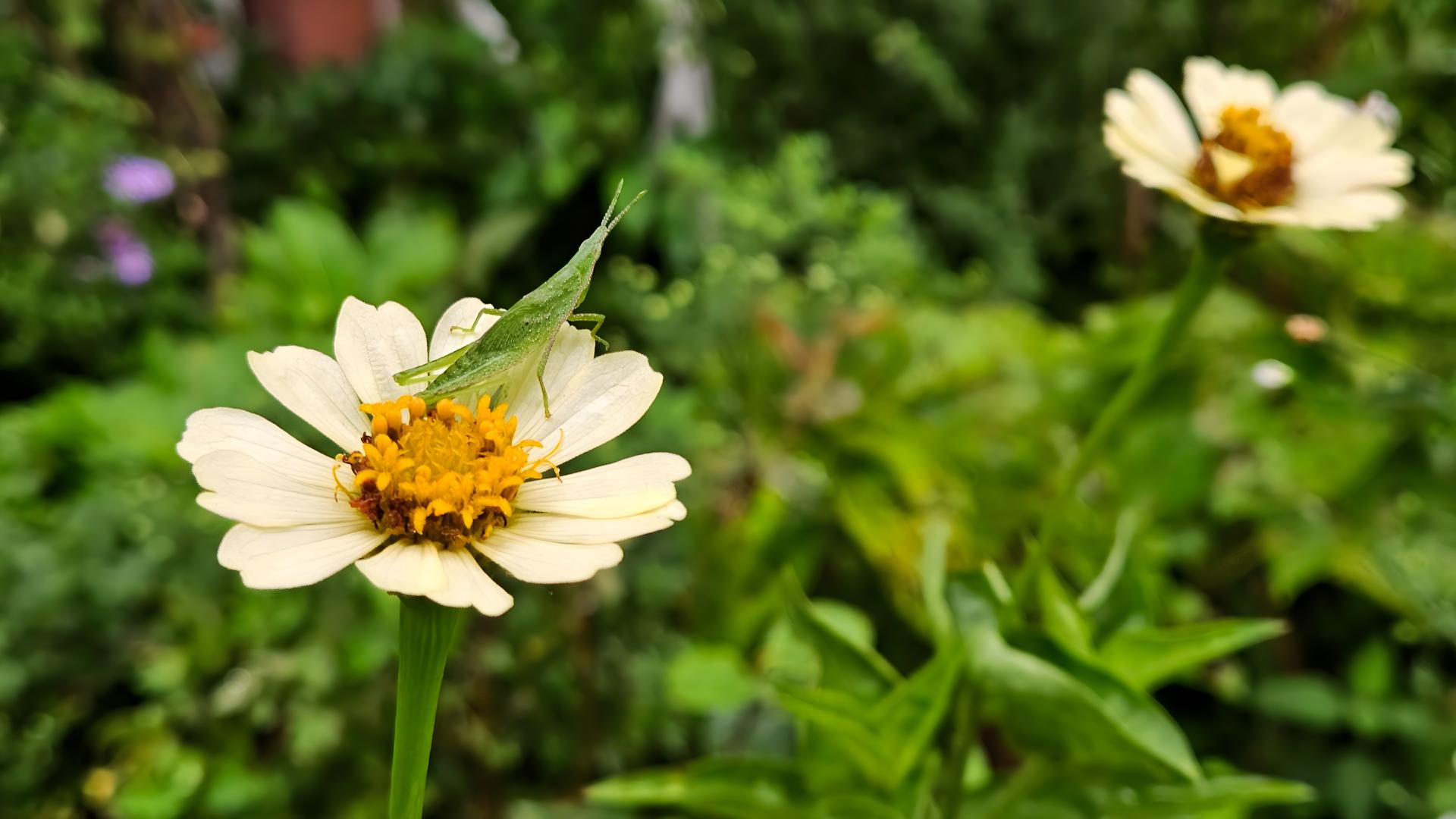 백일홍 꽃과 섬서구메뚜기 약충 #꽃 #백일홍 #약충 #메뚜기 #섬서구메뚜기 [원본: 해상도 = 8000x4504, 크기 = 4.8MiB]
