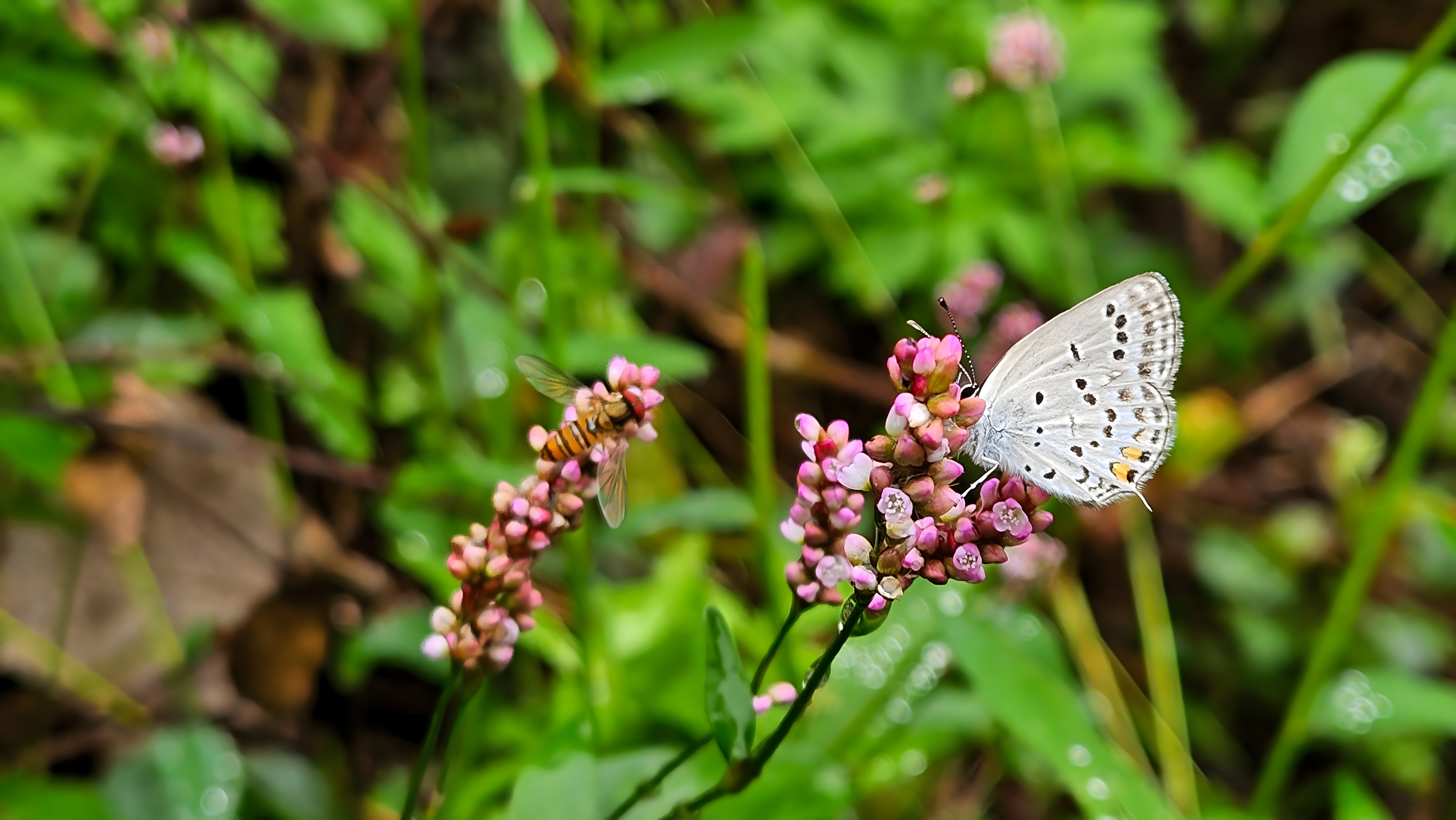 고마리꽃의 호리꽃등에와 먹부전나비