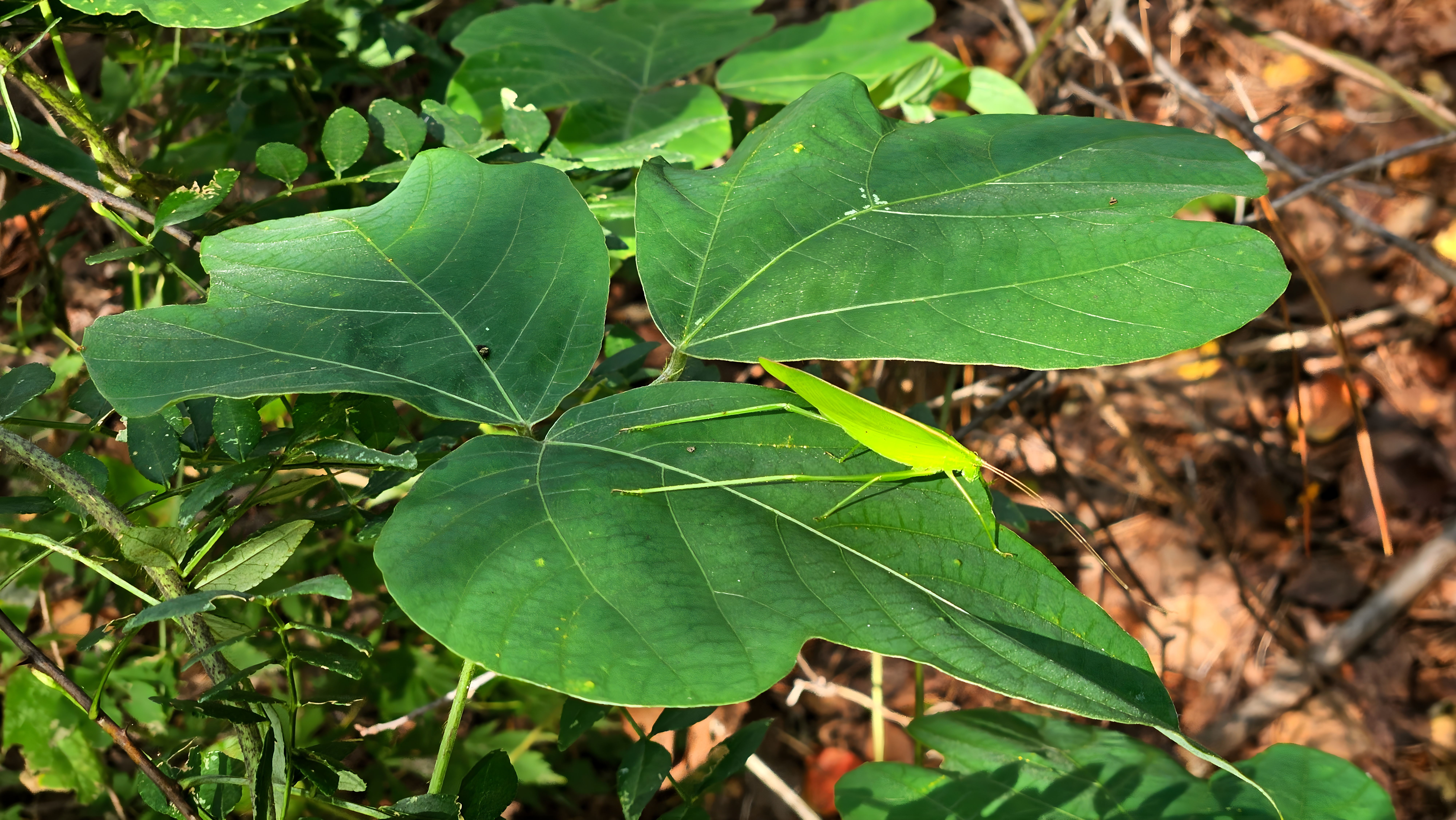 칡잎에서 햇살을 즐기는 줄베짱이 암컷 #잎 #칡잎 #베짱이 #줄베짱이 [원본: 해상도 = 8000x4504, 크기 = 8.6MiB]