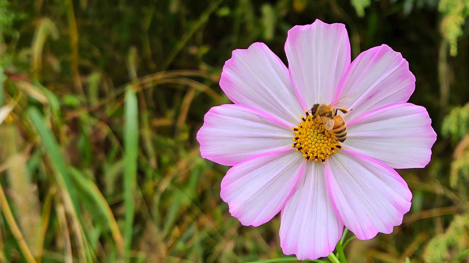 코스모스 꽃꿀을 빠는 꿀벌 #꽃 #살사리꽃 #코스모스 #벌 #꿀벌 #양봉꿀벌 [원본: 해상도 = 8000x4504, 크기 = 5.3MiB]