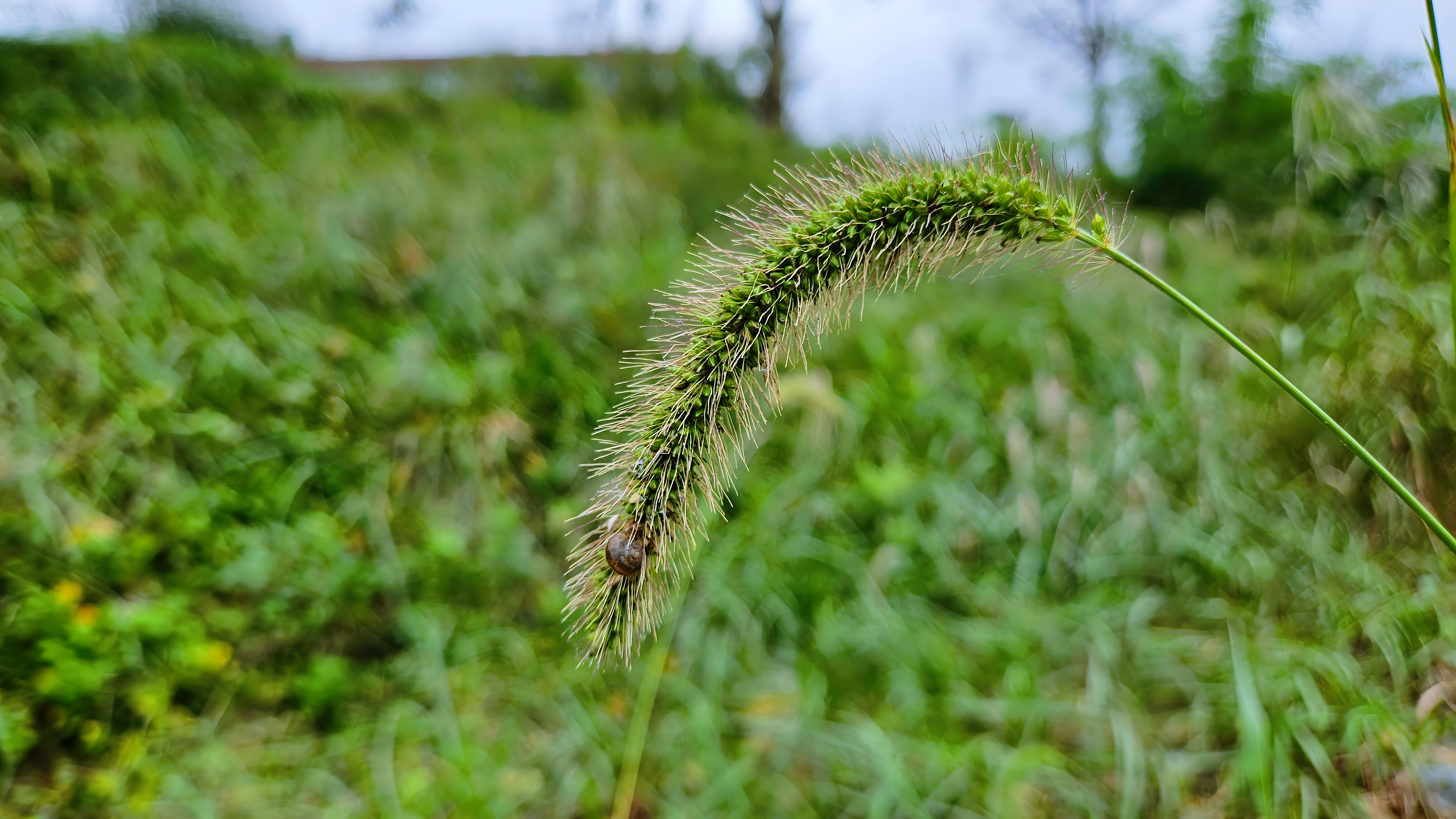 강아지풀 이삭에 숨어쉬는 명주달팽이